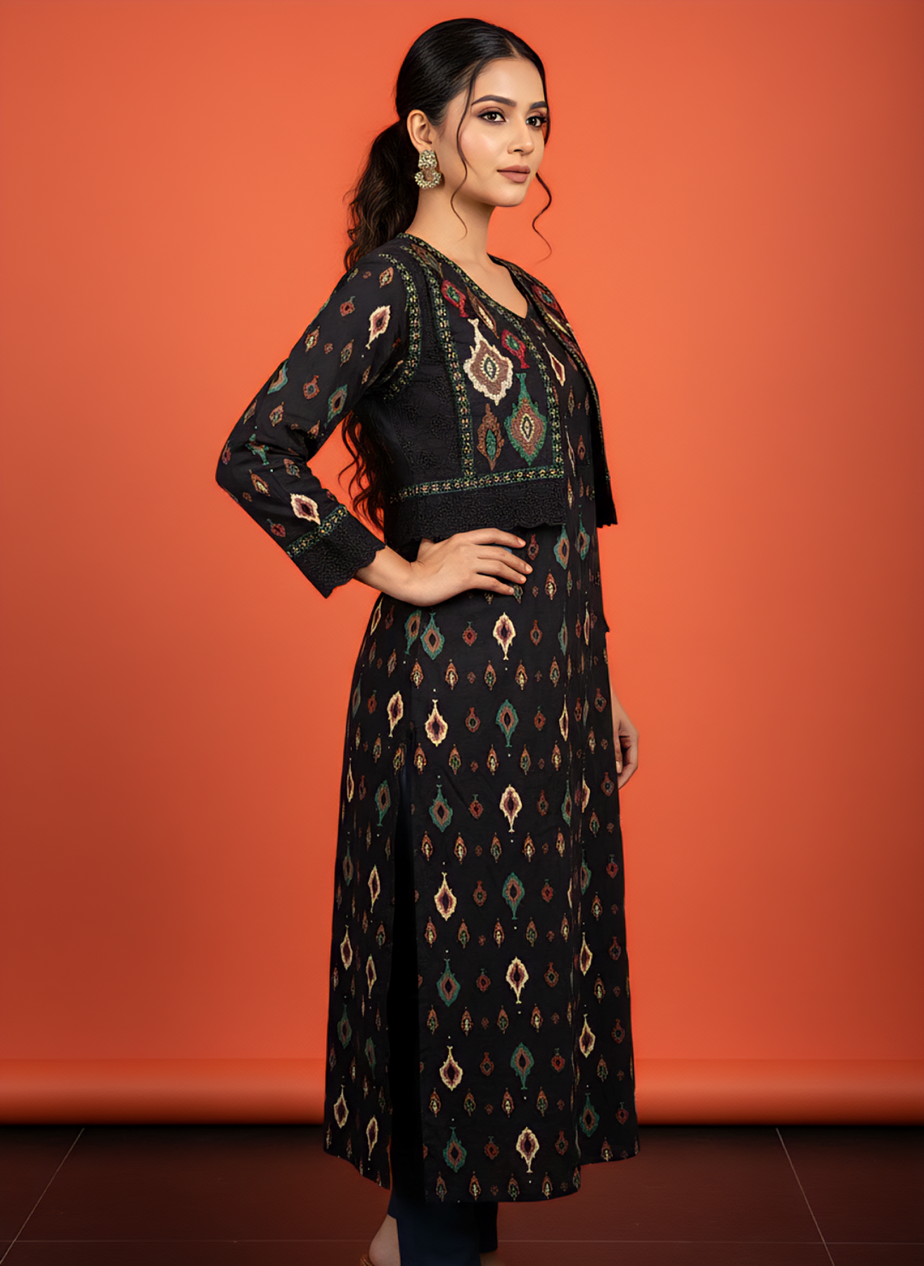 Elevate your everyday wardrobe with this striking black cotton kurta, featuring an intricate digital print design that seamlessly blends traditional aesthetics with contemporary flair. Crafted from breathable cotton fabric, this versatile piece offers comfort without compromising on style. The sophisticated digital print adds visual depth and character, making it an ideal choice for casual gatherings, festive occasions, or relaxed workdays. Perfect for layering or wearing standalone, this kurta transitions effortlessly from day to evening, embodying timeless elegance with a modern sensibility.