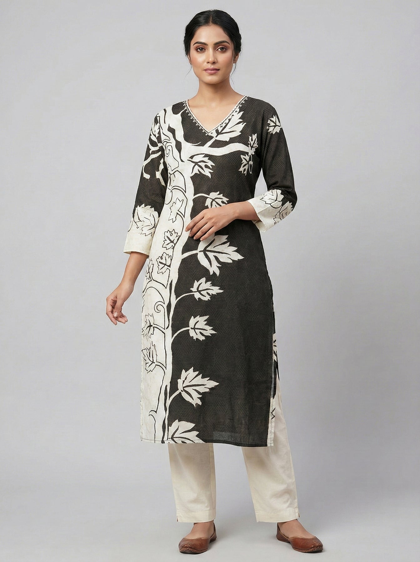 Elevate your everyday wardrobe with this stunning Black Rayon Floral Digital Print Kurta. Crafted from soft, breathable rayon, this piece combines comfort with contemporary style. The intricate floral digital print adds a touch of elegance and sophistication, making it perfect for casual outings, festive gatherings, or relaxed work settings. The classic black base ensures versatility, pairing effortlessly with your favorite bottoms and accessories. Experience the perfect blend of traditional charm and modern design—a wardrobe essential that celebrates your unique style while keeping you cool and comfortable throughout the day.