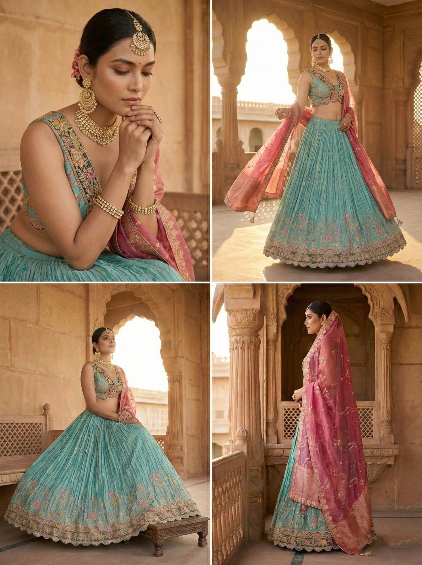 Elevate your ethnic wardrobe with this stunning Sea Green Tissue Embroidery Ghagra Set. Crafted from luxurious tissue fabric, this ensemble features intricate embroidery work that captures traditional elegance with contemporary flair. The rich sea green hue complements all skin tones, making it perfect for weddings, festivals, and special celebrations. The flowing ghagra silhouette offers comfort without compromising on style, while the detailed embroidery adds a touch of sophistication. Ideal for those who appreciate timeless Indian craftsmanship and want to make a graceful statement at any occasion.