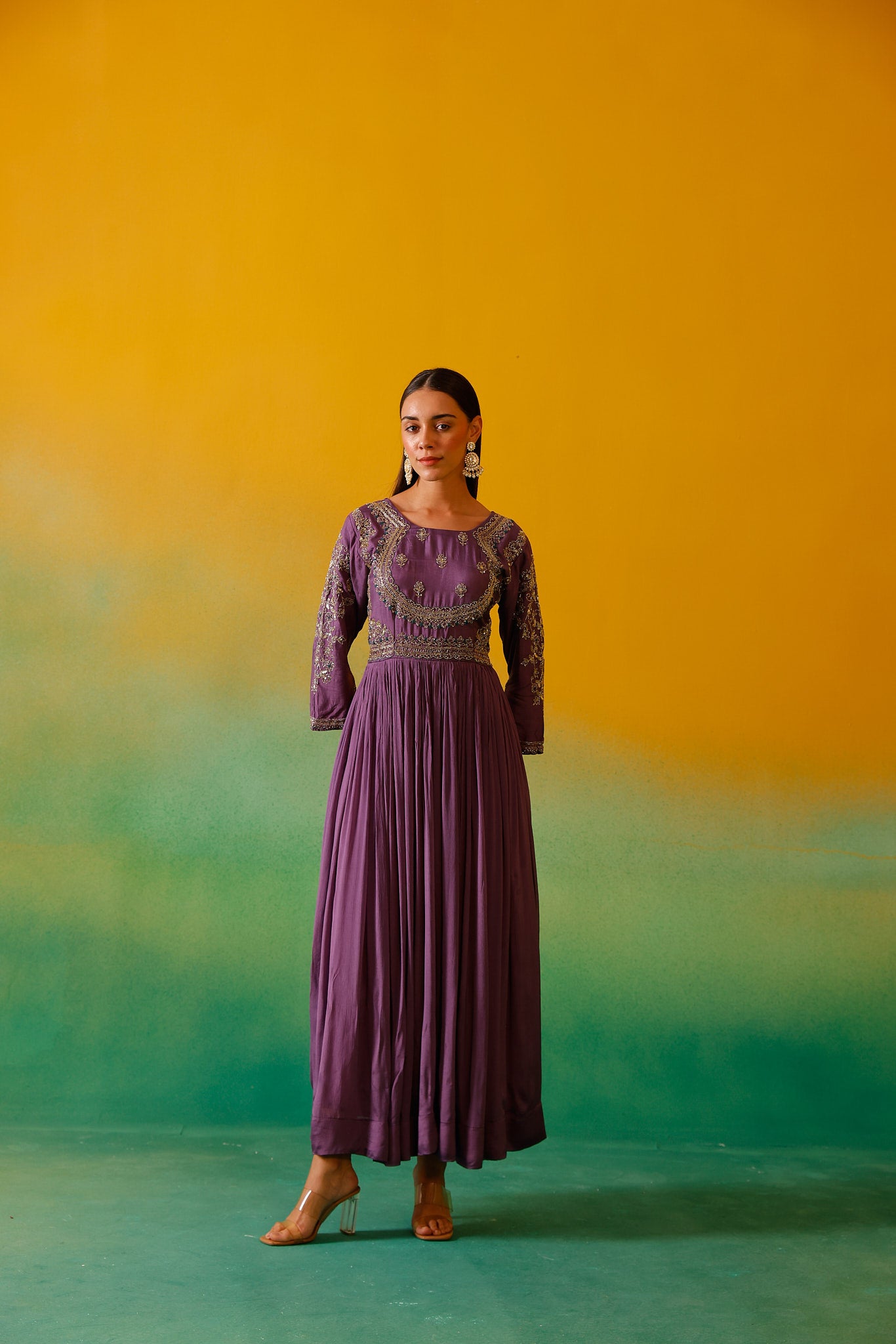 Neerus Lavender Embroidery Chinon Fabric Anarkali and Dupatta The elegant design and soft fabric will make you the center of attention at any gathering. Perfect for showcasing your sophisticated style.