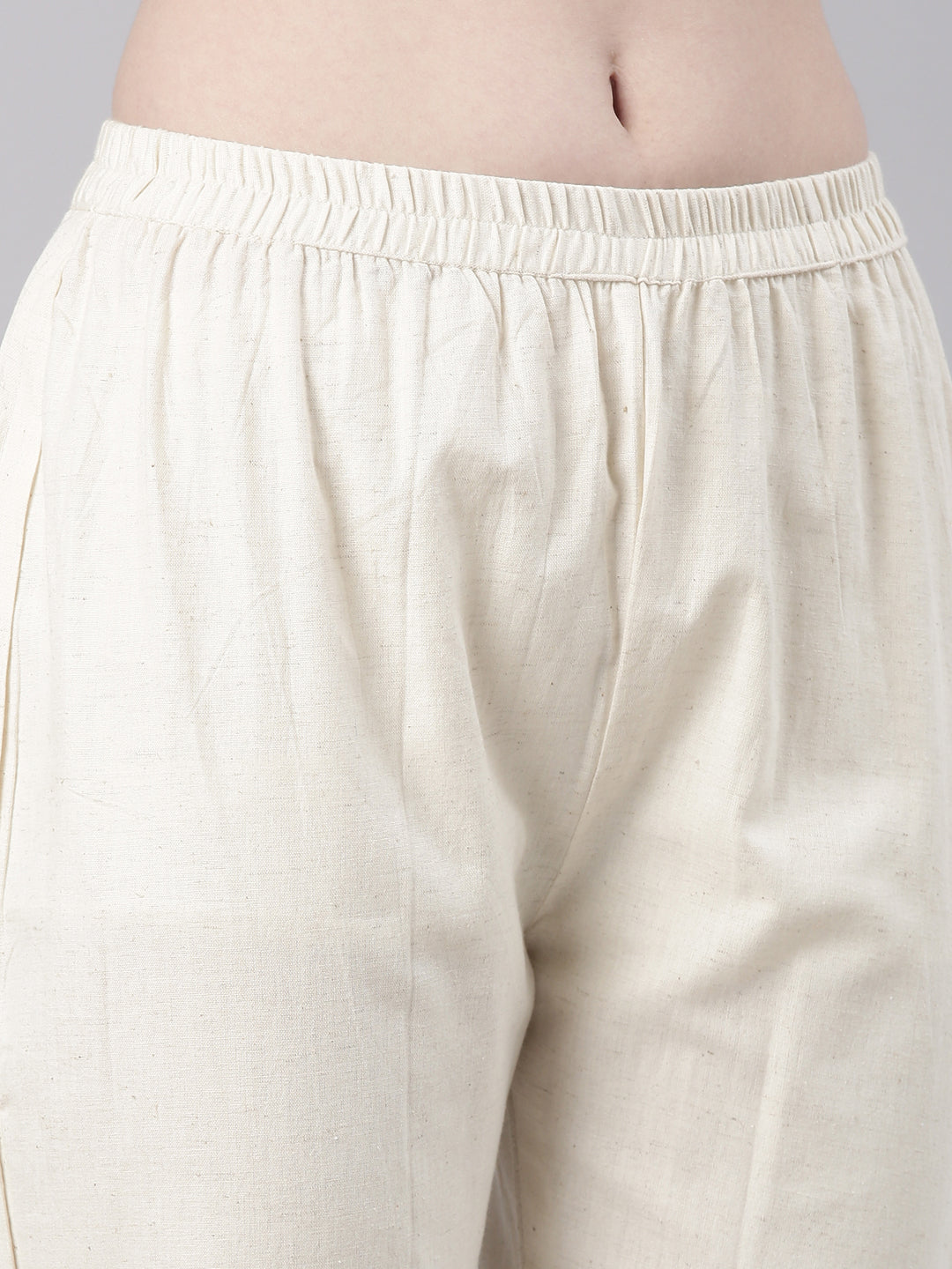 Neerus Cream Casual Embroidered Kurti with Trousers