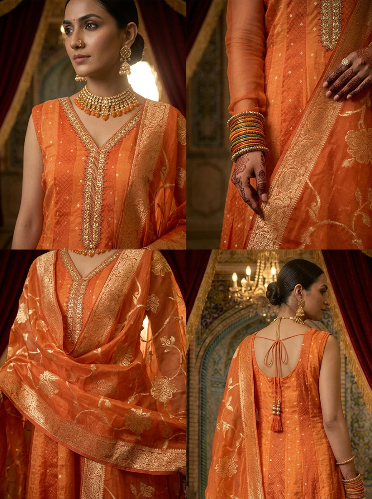 Elevate your ethnic wardrobe with this stunning three-piece set in vibrant orange tissue fabric. Featuring intricate printed patterns, this ensemble combines traditional elegance with contemporary style. Perfect for festive occasions, celebrations, or everyday sophistication, the lightweight tissue material ensures comfort throughout the day. The coordinated pieces work seamlessly together, offering versatile styling options. Ideal for those who appreciate quality craftsmanship and timeless design.