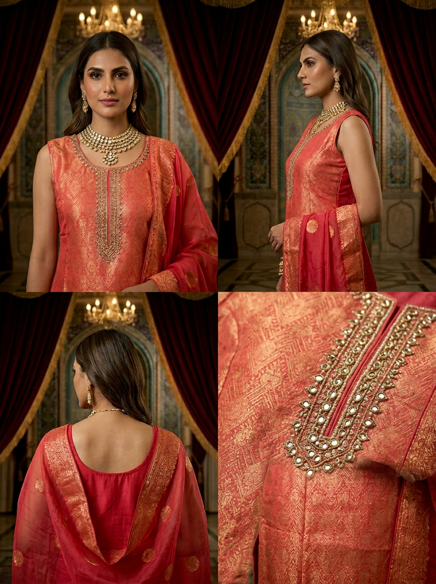 Elevate your ethnic wardrobe with this stunning pink tissue printed trouser set, featuring intricate patterns that blend traditional elegance with contemporary style. The set includes a beautifully coordinated dupatta that adds grace and versatility to your look. Crafted from premium tissue fabric, it offers a lightweight, breathable comfort perfect for festive occasions, celebrations, or everyday wear. The printed design showcases vibrant hues and detailed craftsmanship, making it an ideal choice for those who appreciate refined Indian fashion. Pair it with traditional jewelry to complete your sophisticated ensemble.