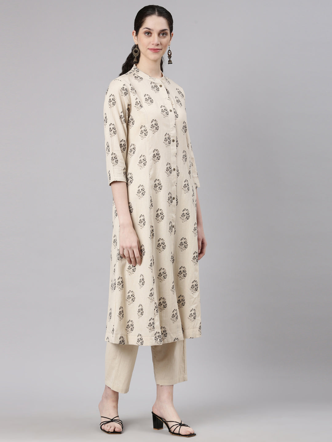 Neerus Beige Straight Casual Floral Kurta and Trouser Versatile, comfortable, and stylish, this kurta and trouser set is perfect for casual occasions.