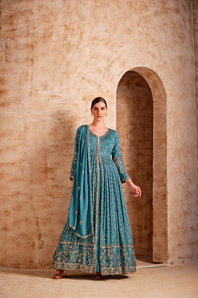 Our gowns & dress bring together the grace of traditional craftsmanship with the allure of modern silhouettes. Browse Neeru’s range of exquisite gowns and dresses for parties, weddings, and festive evenings.