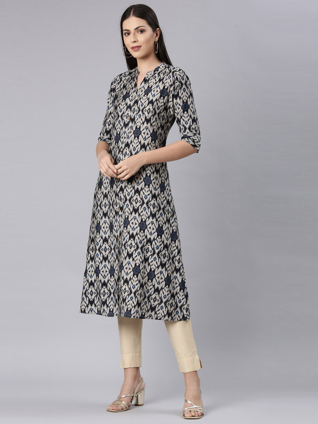 Neerus Navy Blue Straight Casual Chevron Anarkali Kurtas Elevate your everyday look with this effortlessly chic anarkali kurta.