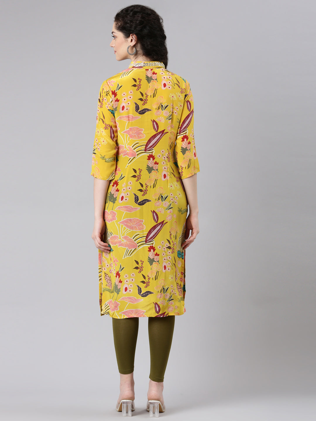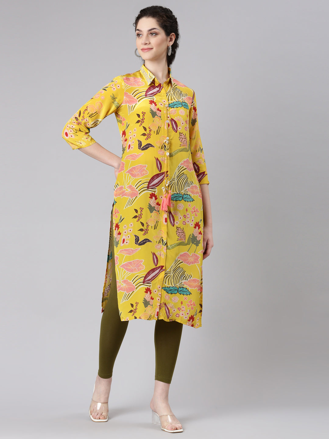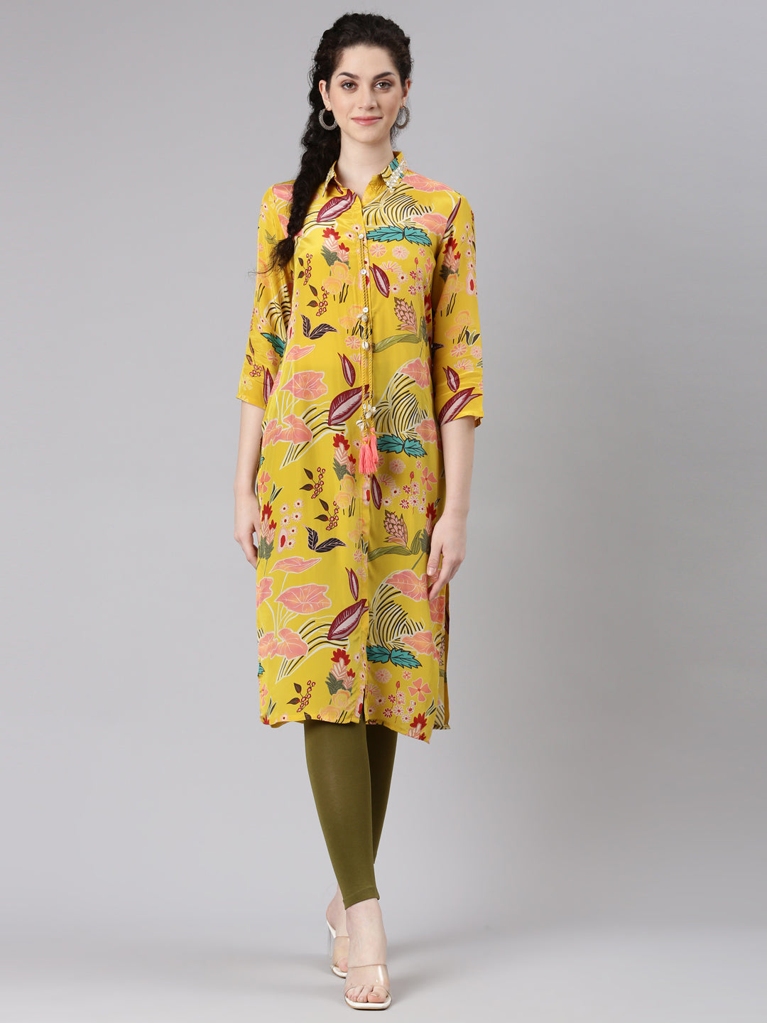 Neerus Yellow Straight Casual Floral Kurtas Upgrade your everyday wardrobe with these versatile and stylish kurtas. From formal occasions to relaxed outings, they'll keep you looking and feeling great all day long.