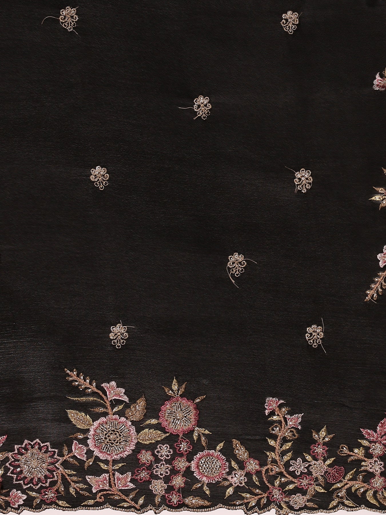 Black Crepe Embroidery Saree With Readymade Blouse