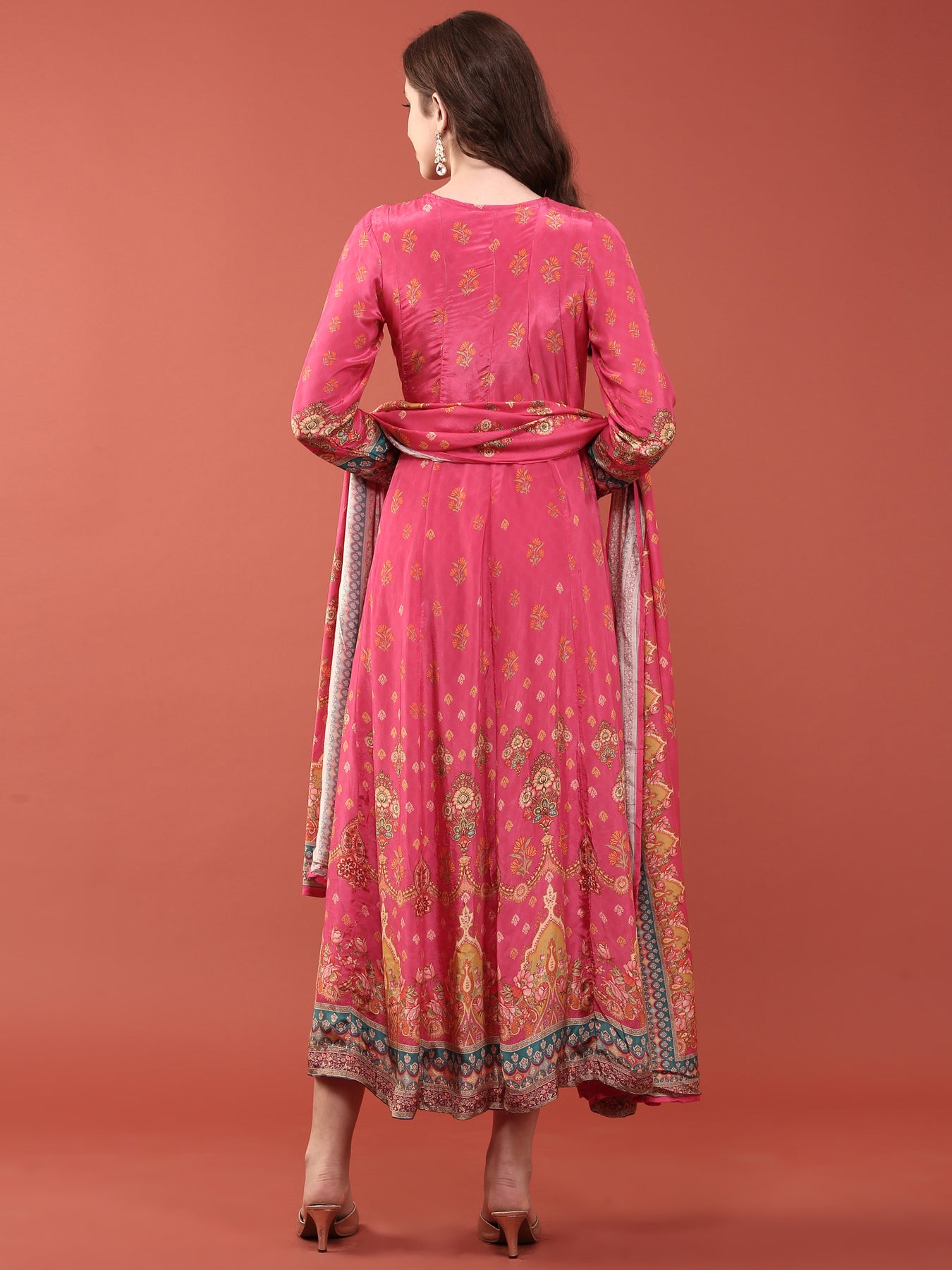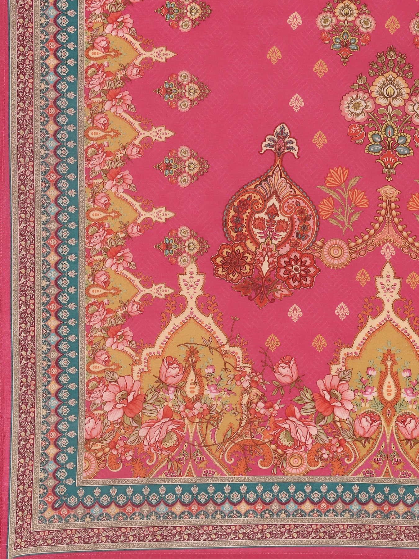 Elevate your wardrobe with this sophisticated three-piece ensemble crafted from premium crepe fabric. The delicate floral digital print in soft pink tones creates an elegant aesthetic perfect for both casual gatherings and semi-formal occasions. This versatile set combines comfort with refined style, offering you multiple styling options through its thoughtfully designed pieces.