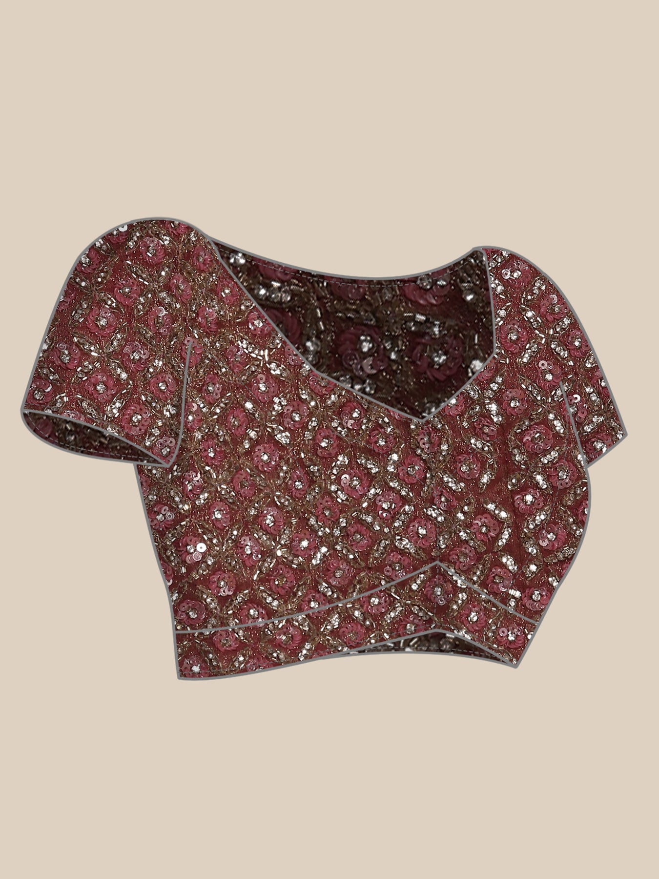 The saree is accompanied by a stylish, ready-made blouse designed to complete your look.