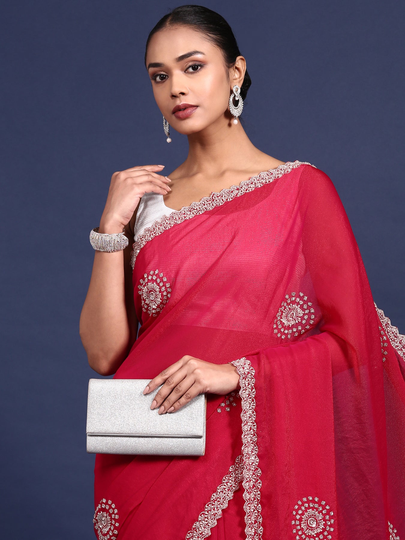 Please note: The blouse shown in the image is for styling purposes only and is not the actual blouse that comes with the saree.