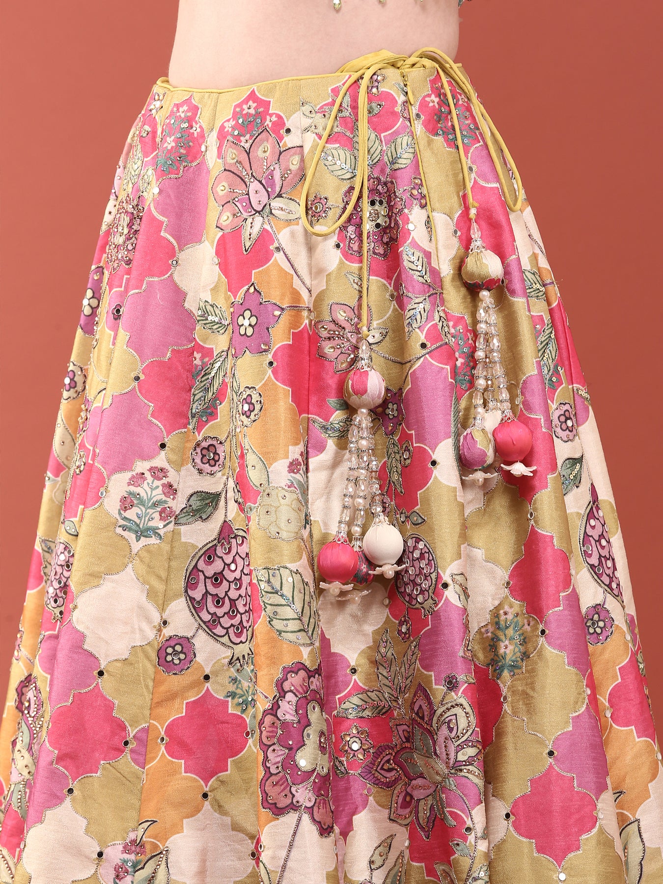 Variyali Green Organza Beads And Sequins Ghagra Set