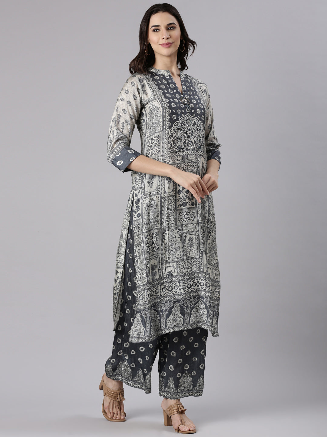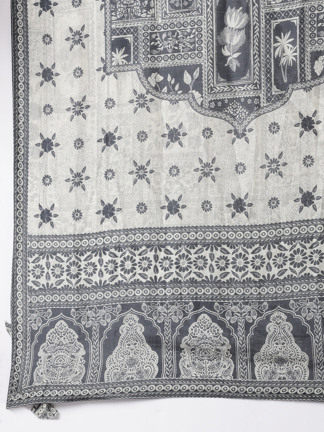 Elevate your wardrobe with this Gray Muslin Printed Three Piece Set, crafted from soft, breathable fabric for all-day comfort. Featuring subtle prints that add a refined touch, this set combines elegance with effortless style. Ideal for both casual and formal occasions, it offers versatile wear that seamlessly adapts to your day.