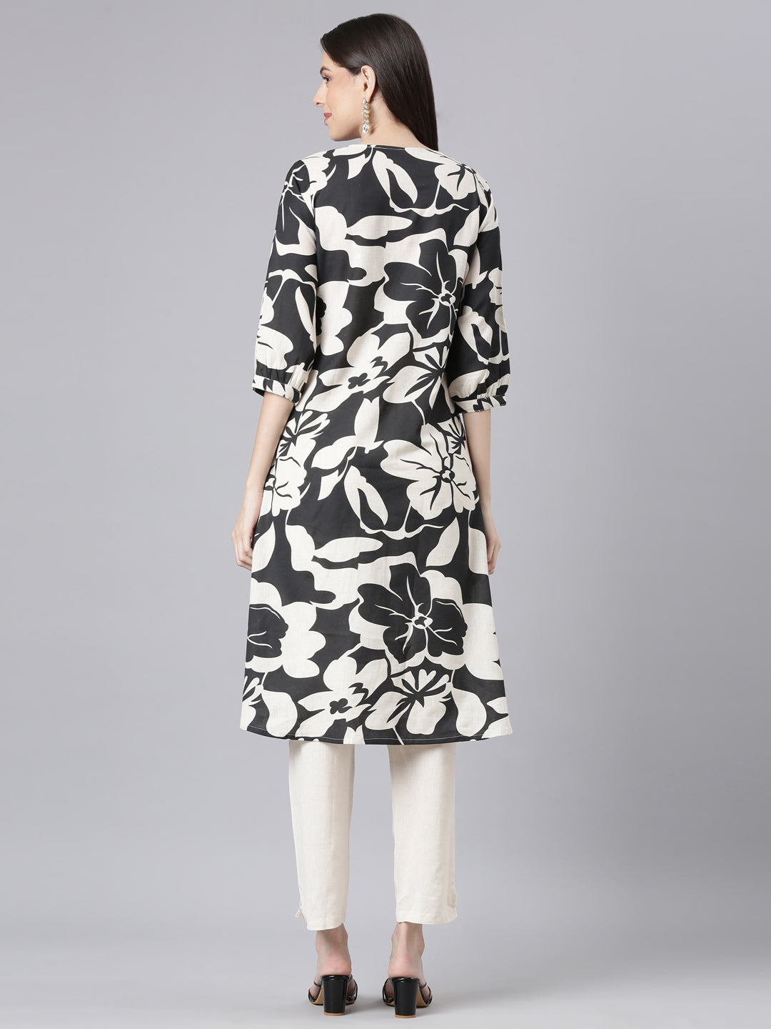 Neerus Black Printed Straight Kurta and Trousers