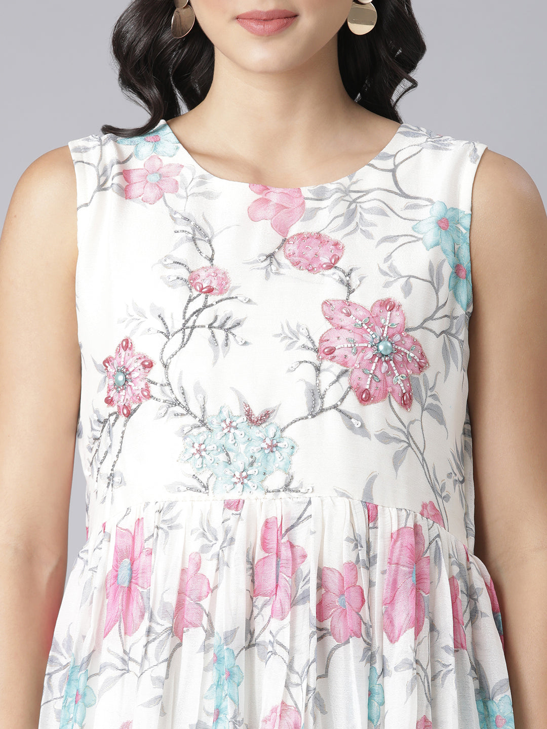 Neerus Cream Casual Floral Maxi Dresses offer a perfect blend of comfort and style for everyday wear. Crafted from breathable fabric, these maxi dresses feature a delicate floral pattern that adds a touch of elegance to your casual wardrobe.