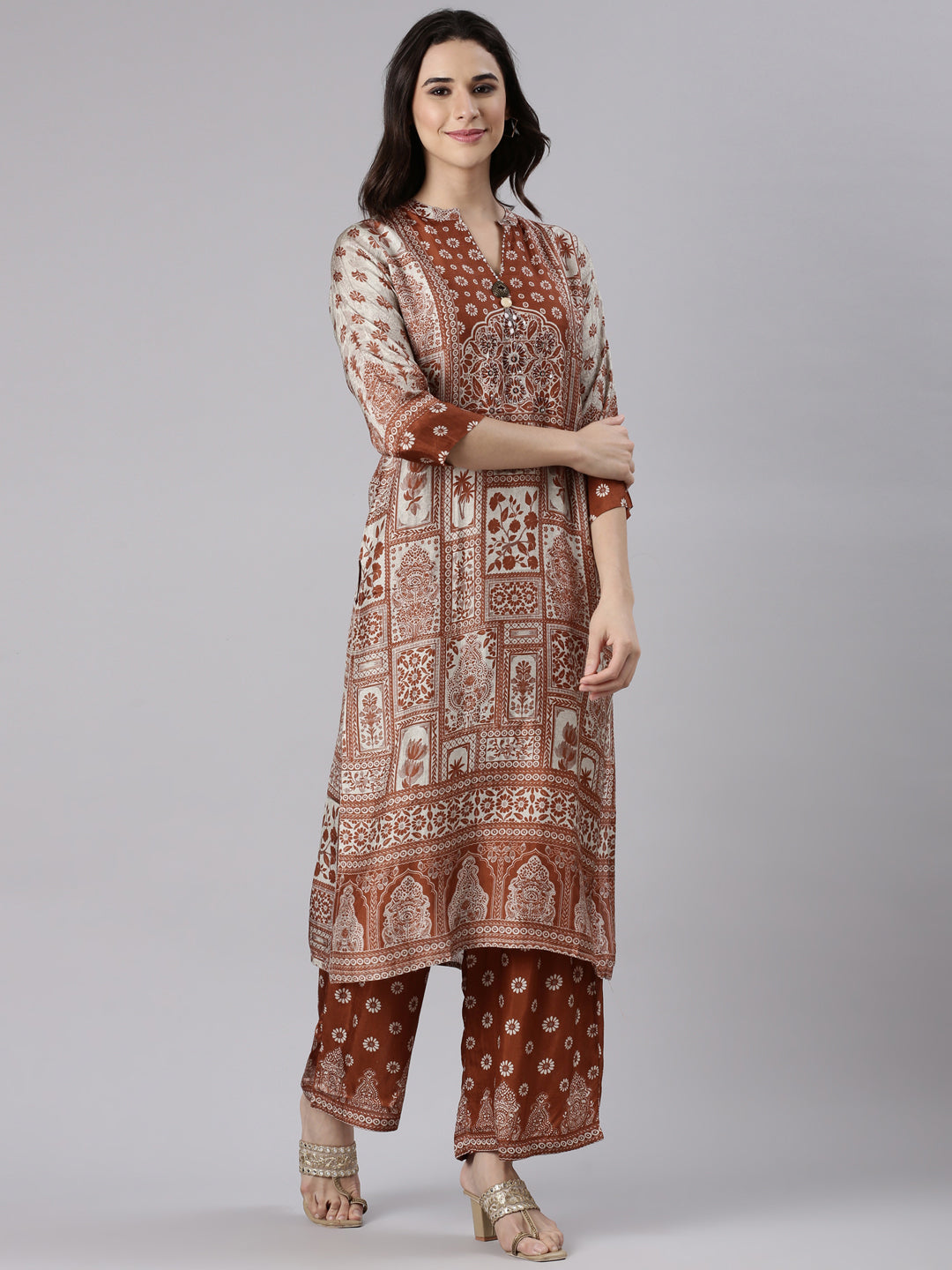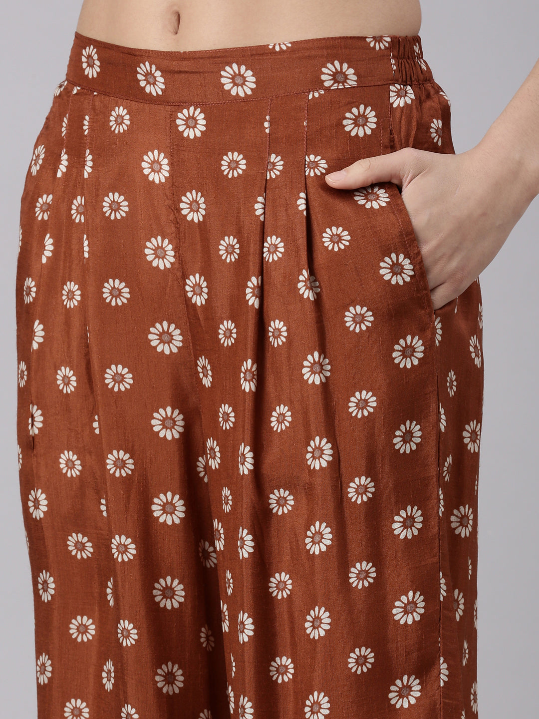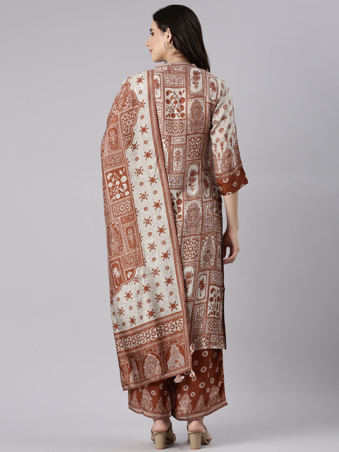 Rust Muslin Printed Three Piece Set