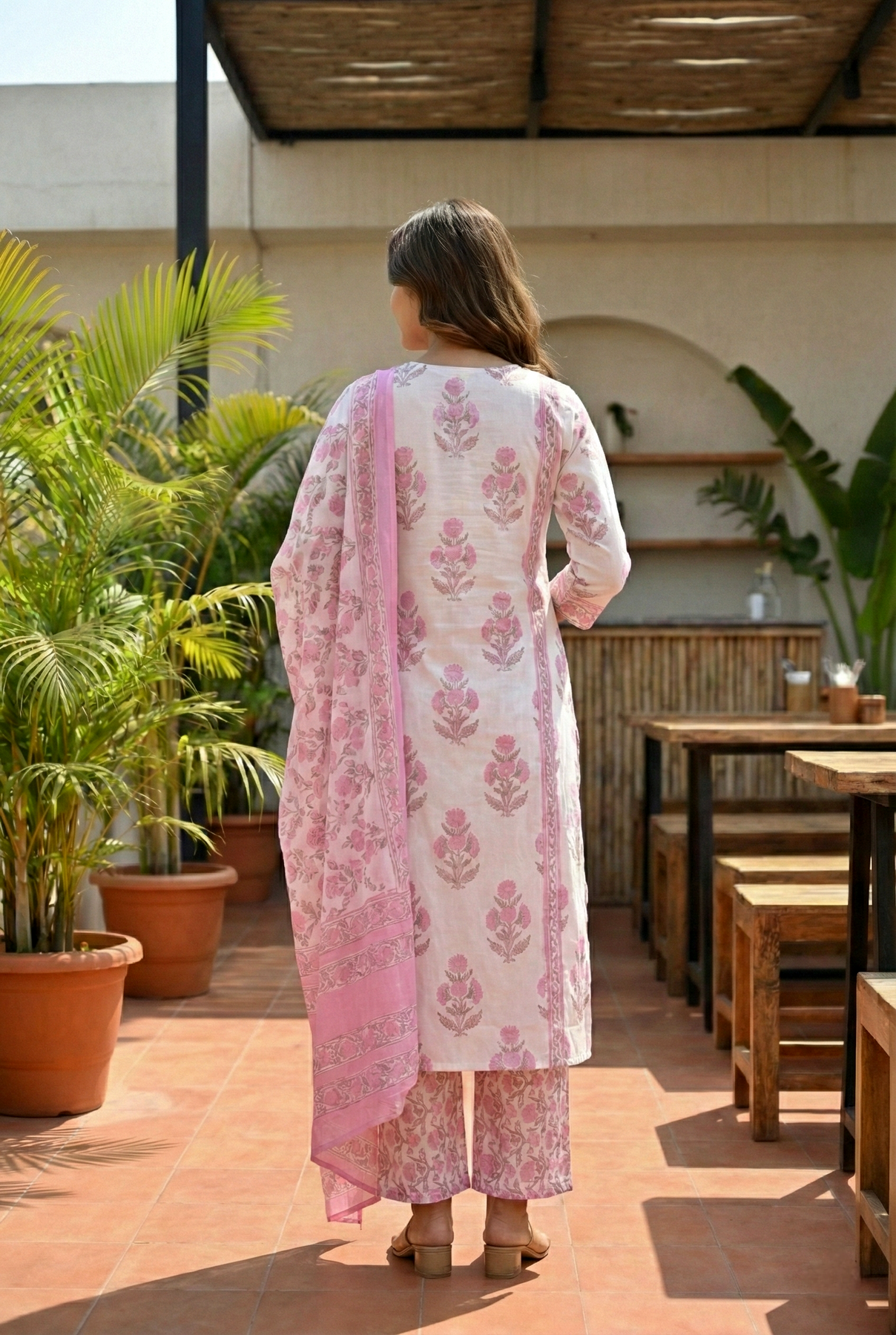 Embrace effortless elegance with this charming three-piece set in soft pink cotton. Featuring delicate floral prints throughout, each piece combines comfort with contemporary style, perfect for creating versatile everyday looks. The breathable cotton fabric ensures all-day wearability, while the coordinated design makes mixing and matching effortless. Ideal for those who appreciate quality craftsmanship and timeless appeal, this set offers exceptional value for building a cohesive wardrobe. Transform your daily style with pieces that feel as good as they look.