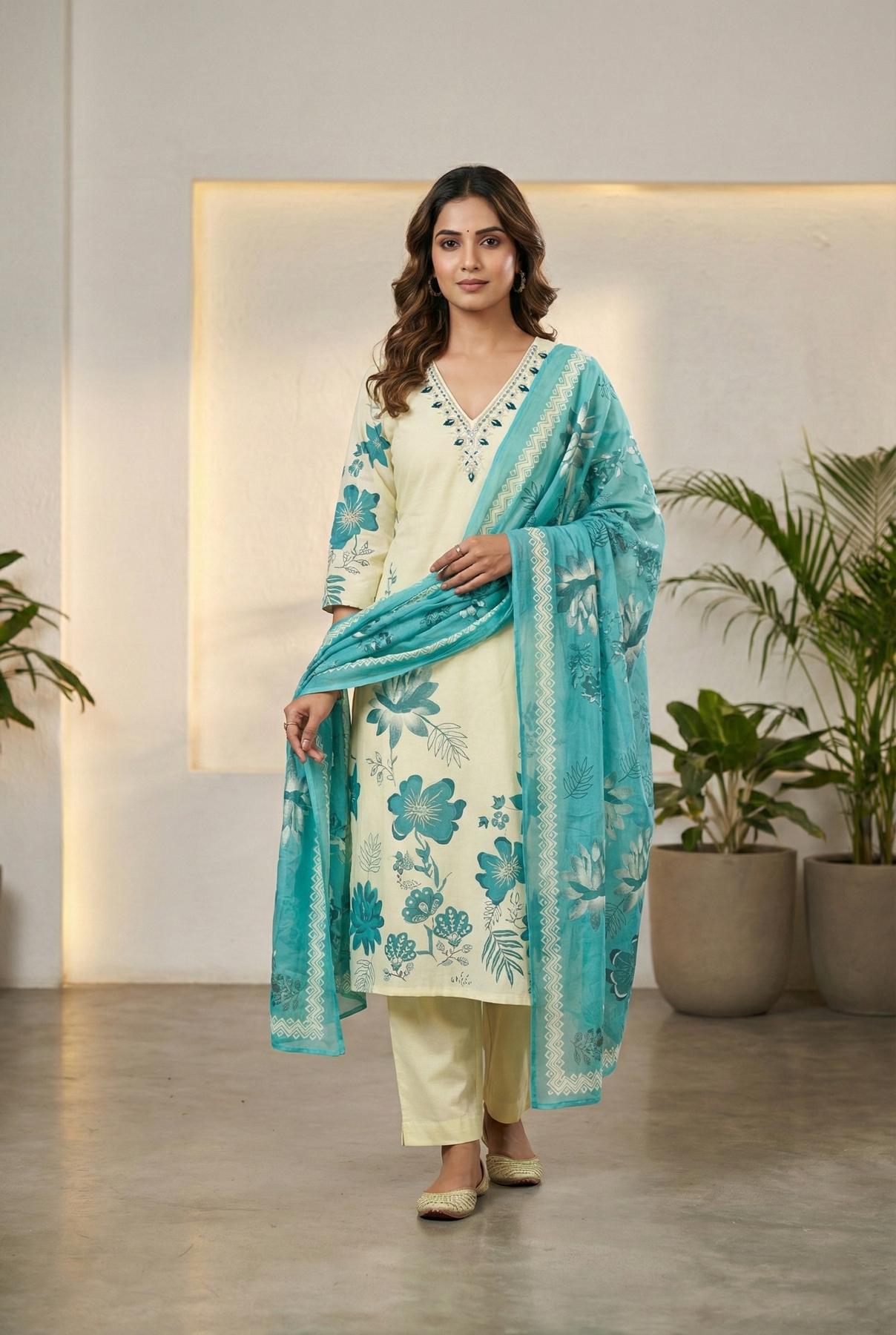 Elevate your ethnic wardrobe with this exquisite three-piece ensemble, meticulously crafted with intricate Rama rayon thread embroidery. Each piece showcases refined artisanal detailing that seamlessly blends traditional craftsmanship with contemporary elegance. The luxurious rayon fabric drapes beautifully, offering both comfort and a graceful silhouette for special occasions, celebrations, or refined everyday wear. Perfect for those who appreciate the finer nuances of Indian fashion and timeless sophistication.