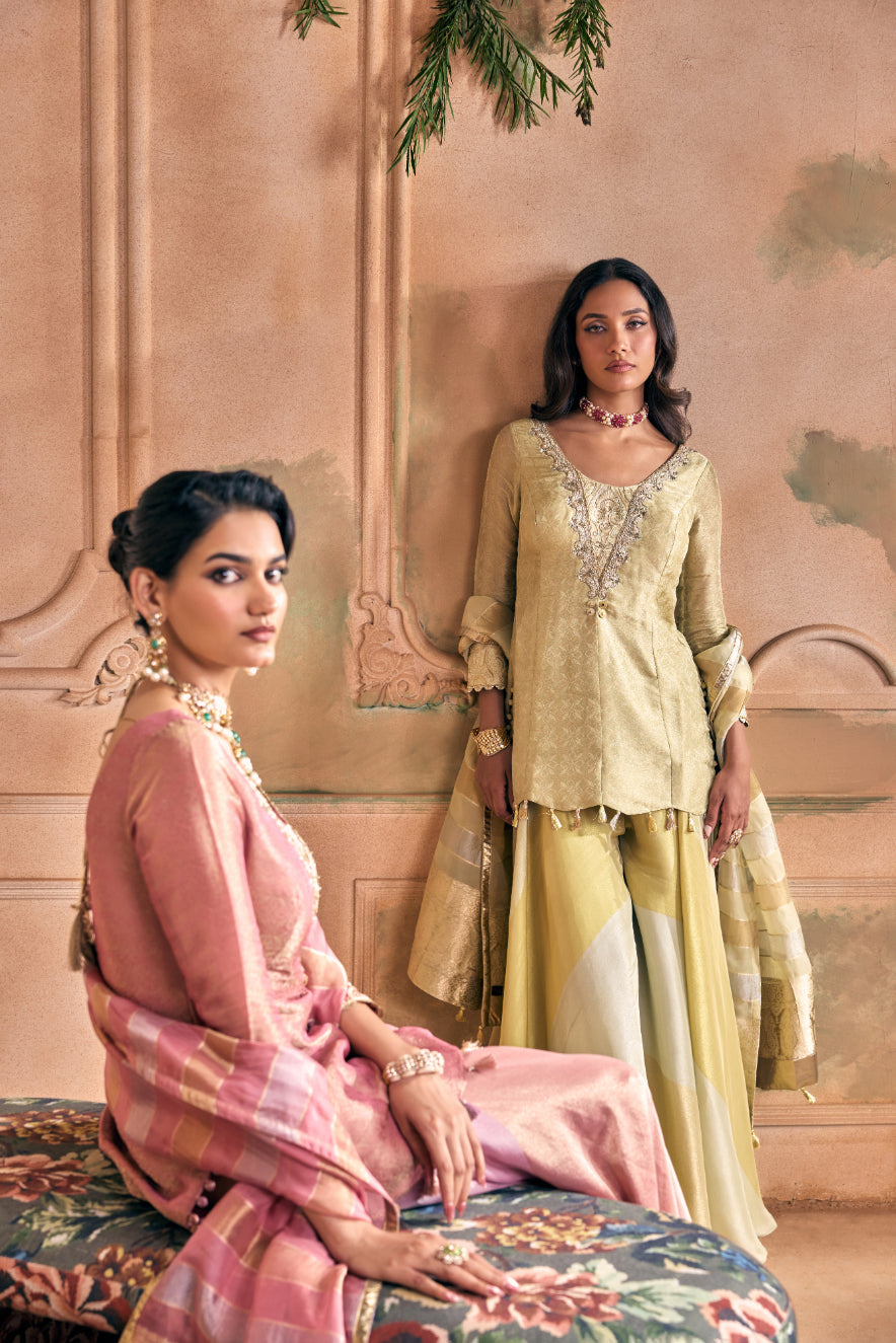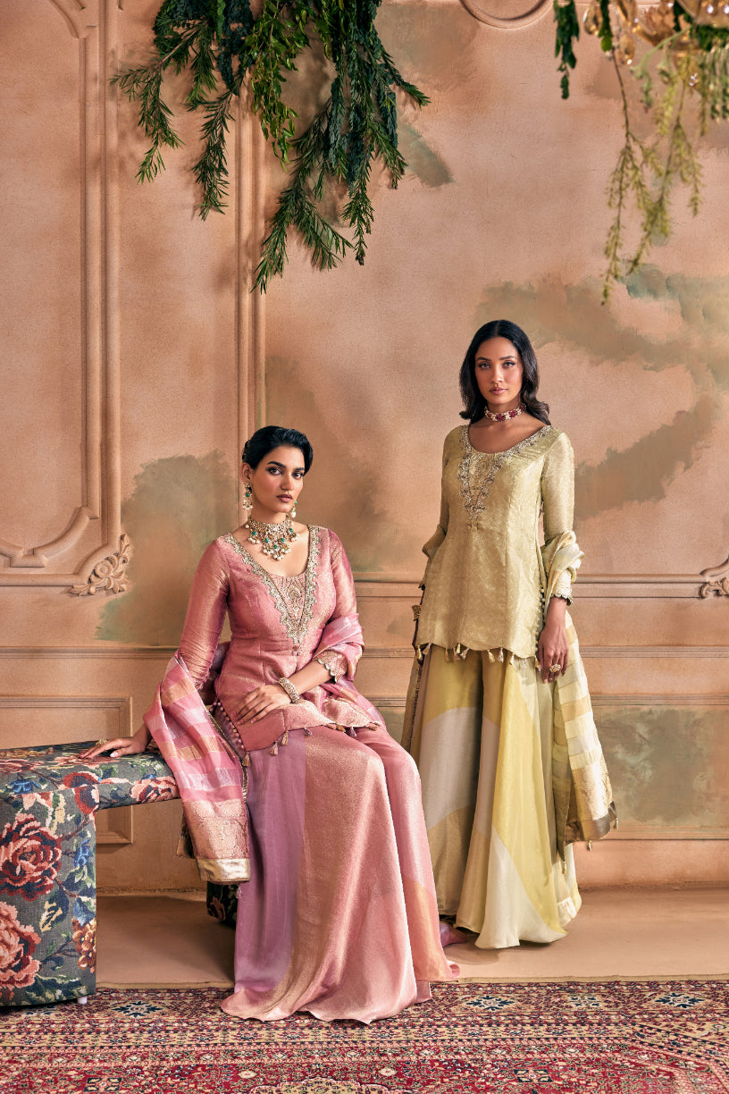 Blend comfort and style with wide-legged palazzo bottoms paired with elegant kurtas. Perfect for festive occasions, casual outings, or office wear, these suits offer a modern take on traditional ethnic wear.