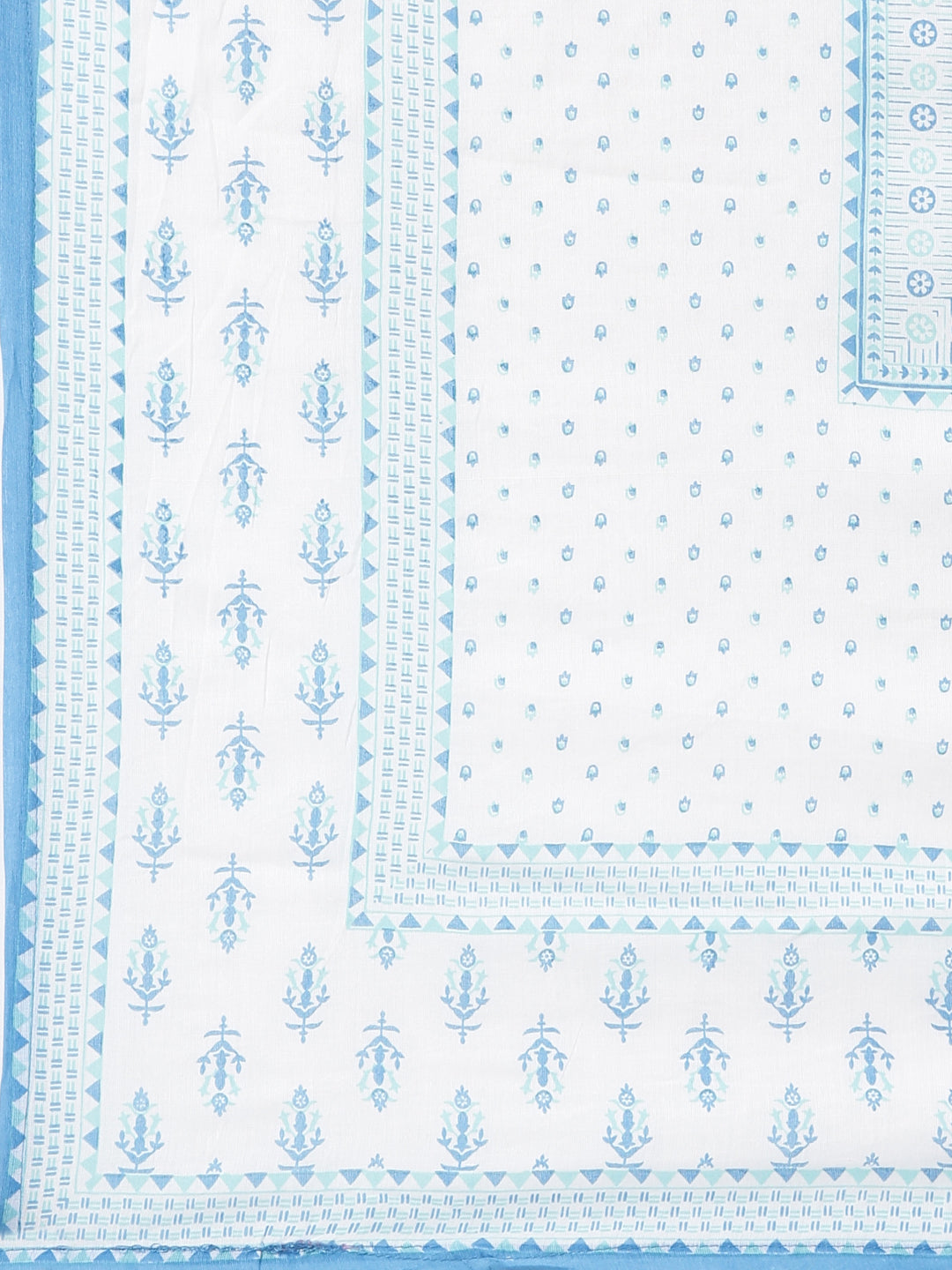 Neerus Blue Regular Straight Floral Kurta And  Trousers With Dupatta