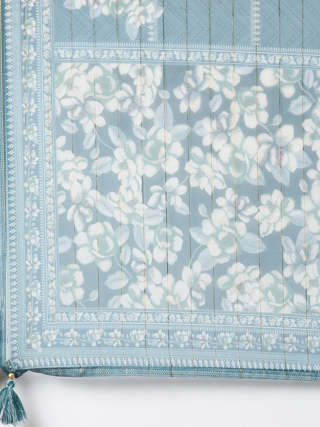 Neerus Blue Regular Straight Floral Kurta And  Trousers With Dupatta