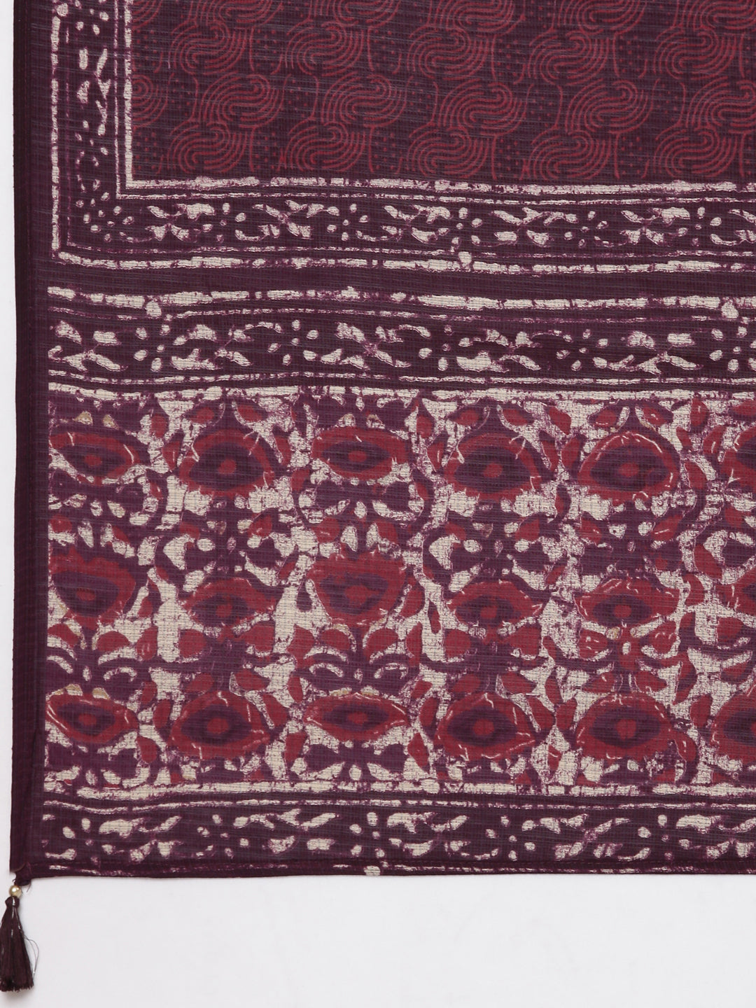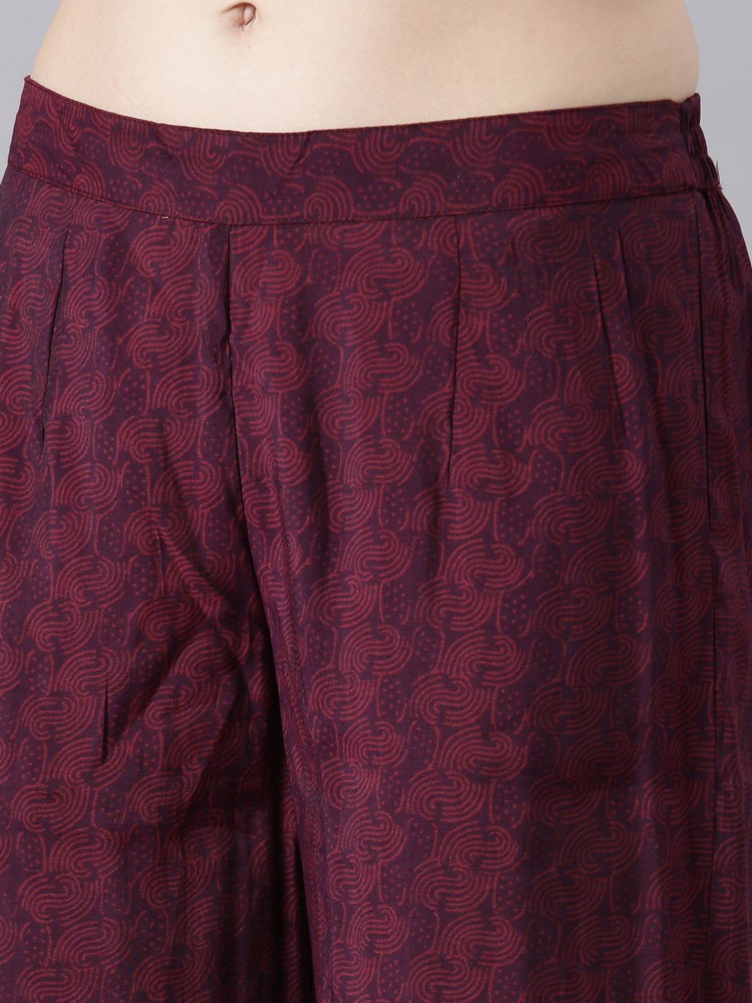 Neerus Purple Model Curved Casual Floral Kurta and Trouser with Dupatta
