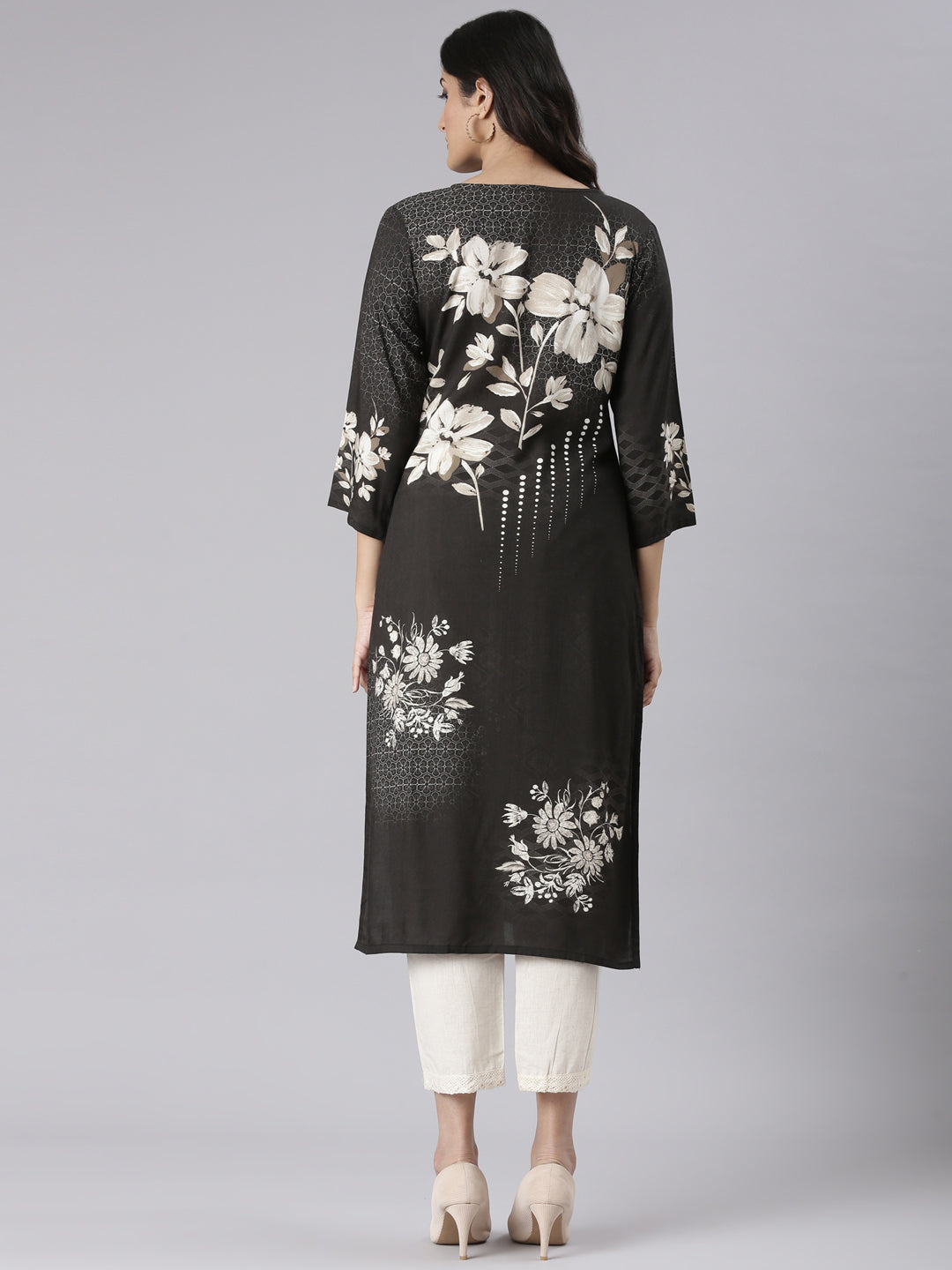Elevate your everyday wardrobe with the Neerus Black Casual Floral Straight Kurtas. Crafted for a sophisticated look, this kurta features a timeless black base adorned with delicate floral patterns. Its straight silhouette offers a flattering fit, balancing comfort with elegance.