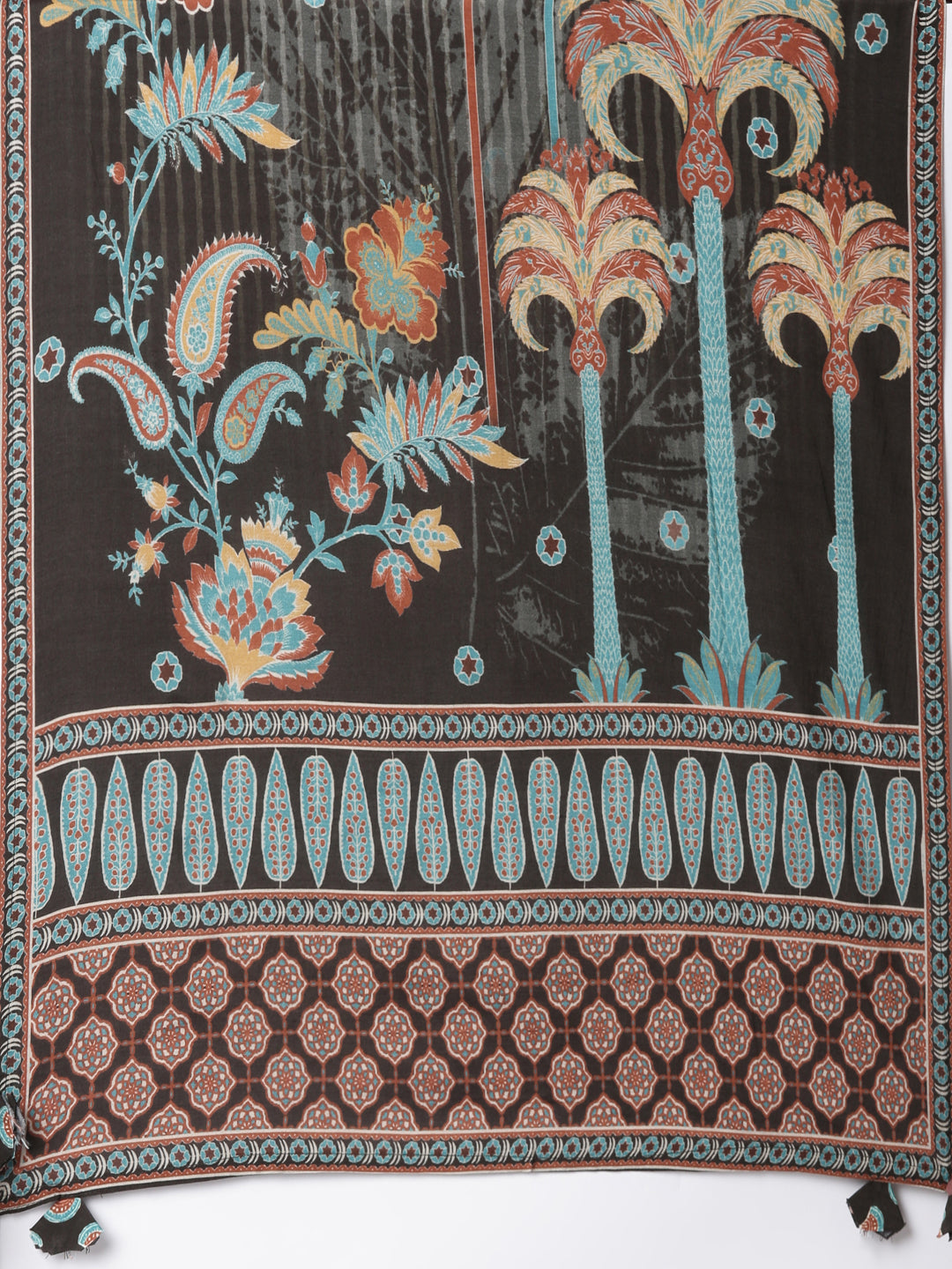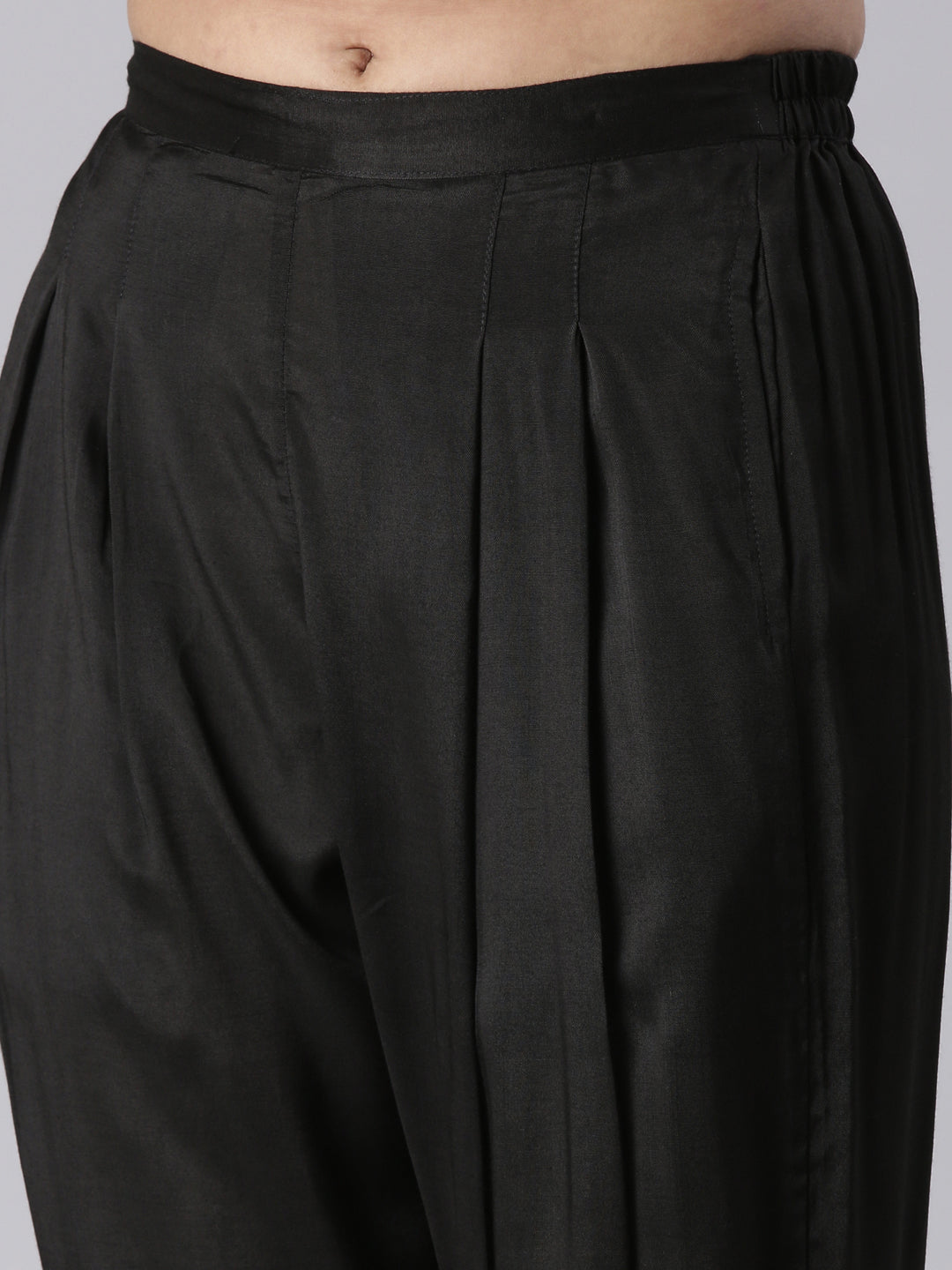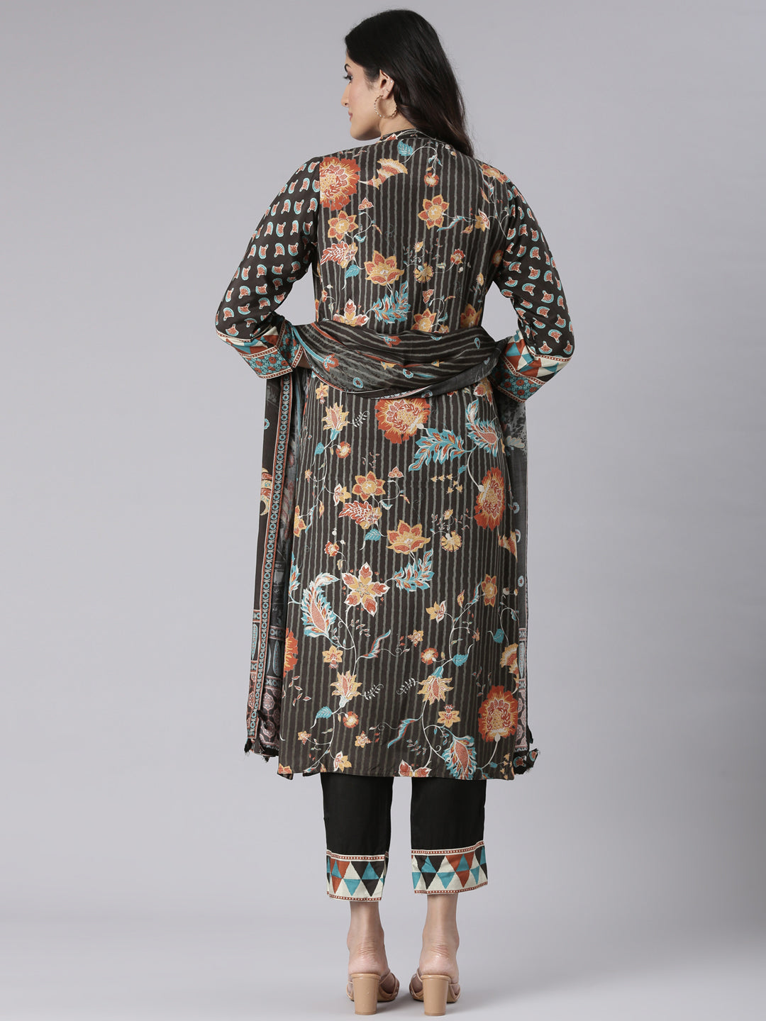 The Neerus Black Printed Straight Kurta and Trousers set, complemented by a matching dupatta, offers a refined blend of classic design and contemporary style. Featuring intricate black prints and a streamlined silhouette, this ensemble provides a polished look suitable for formal events and celebrations.