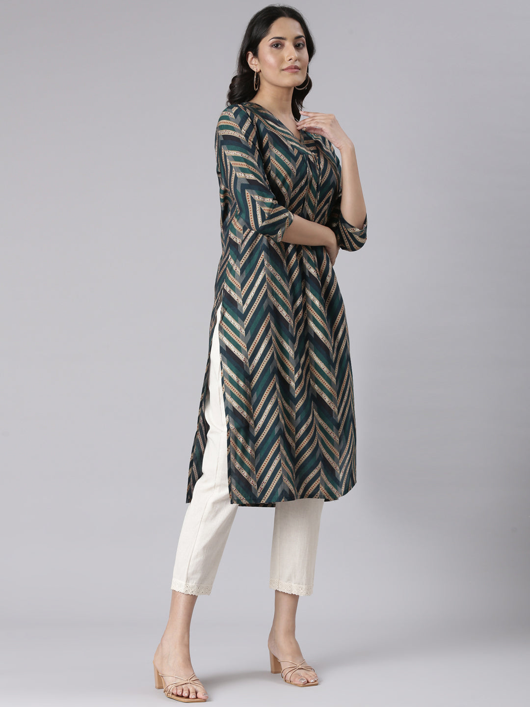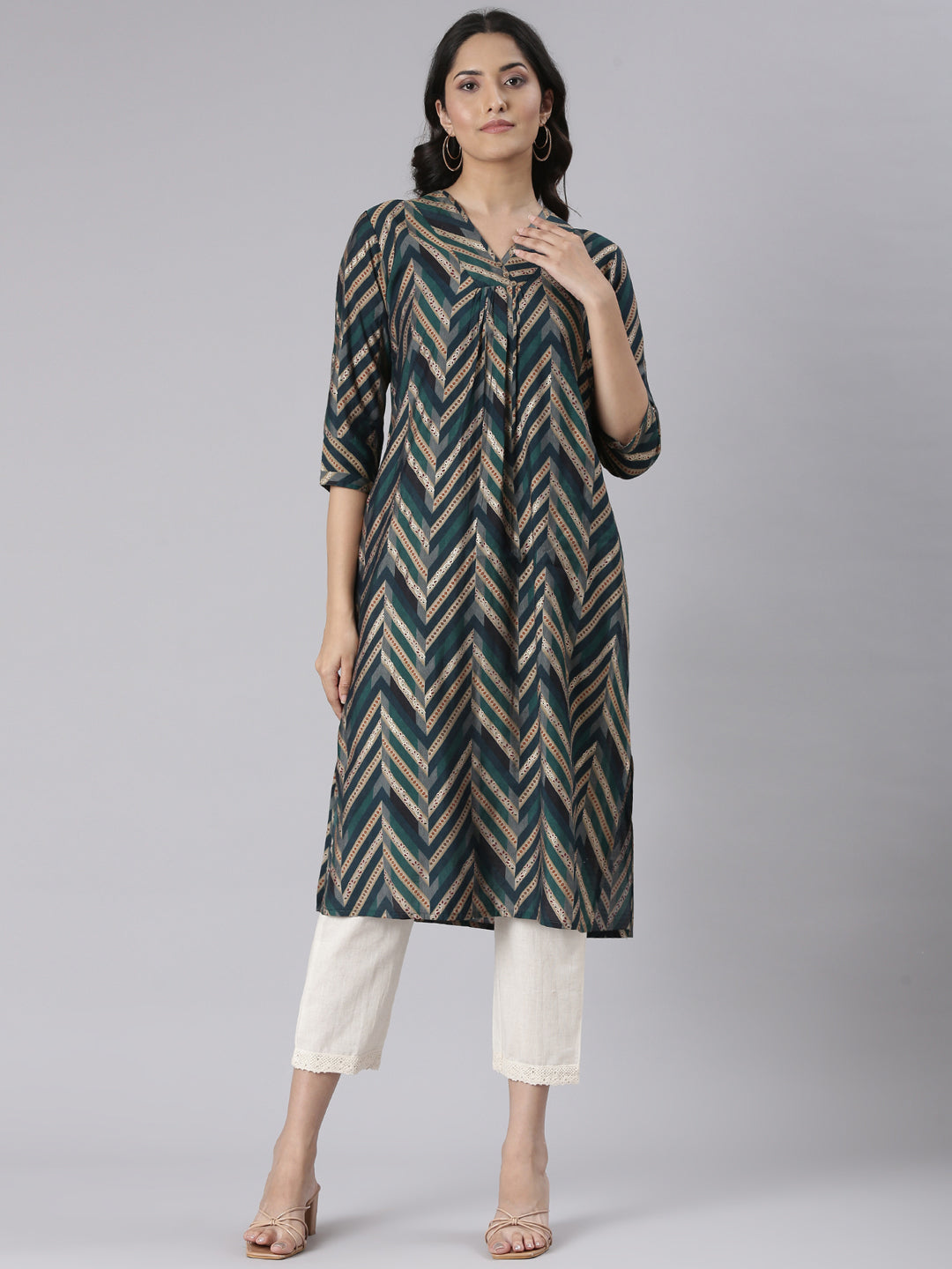 Elevate your everyday wardrobe with the Neerus Blue Casual Chevron Straight Kurta. Crafted with a refined chevron pattern, this kurta offers a sleek silhouette that effortlessly blends comfort with contemporary style.