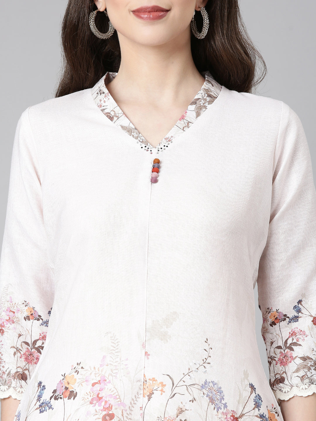 Elevate your everyday wardrobe with the Neerus Cream Casual Solid Kurti paired with matching trousers. Crafted for comfort and style, this ensemble features a timeless solid cream kurti that offers a versatile, elegant look suitable for casual outings or office wear.