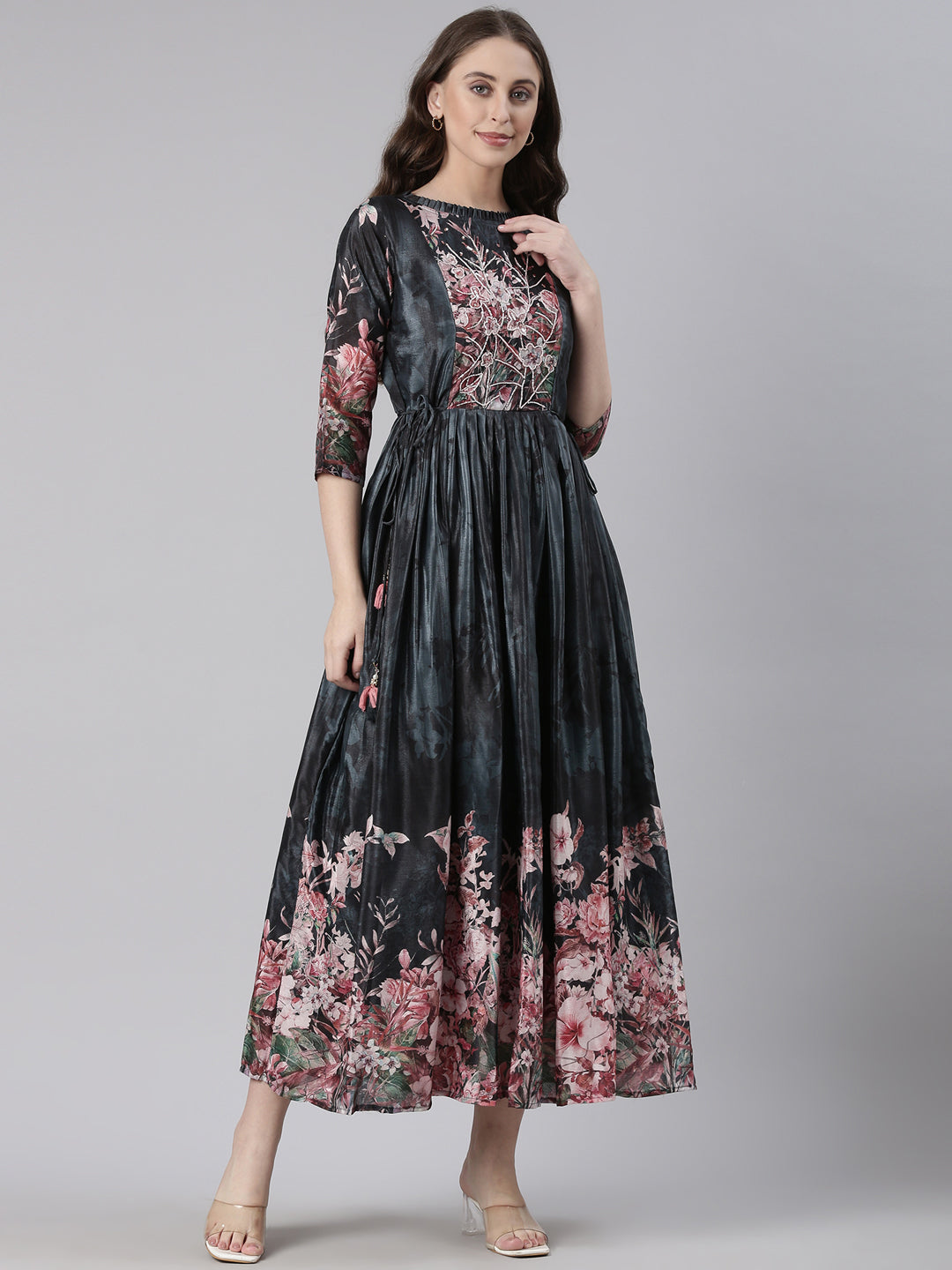 Embrace effortless style with the Neerus Grey Casual Floral Maxi Dress. Its soft grey fabric adorned with delicate floral patterns offers a timeless look perfect for everyday wear. Designed for comfort and ease, this maxi dress flows gracefully, making it ideal for casual outings or relaxed weekends.