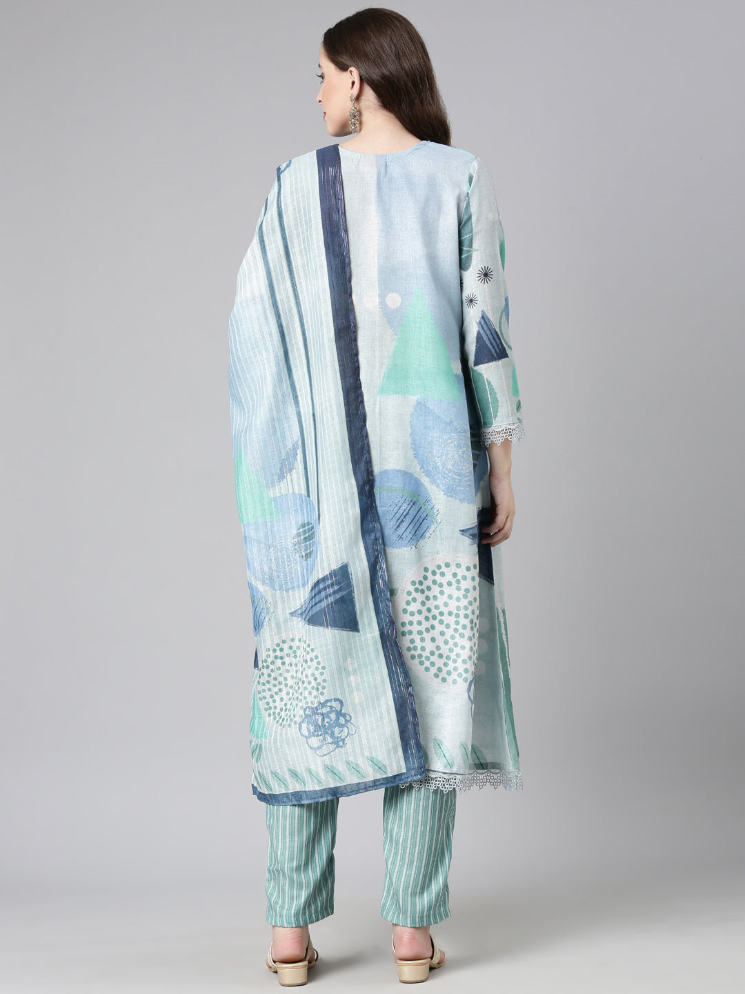 Elevate your ethnic wardrobe with the Neerus Grey Printed Straight Kurta and Trousers set, complemented by a matching dupatta. Crafted for a refined silhouette, the straight kurta features subtle prints that add understated elegance. Paired with tailored trousers, this ensemble ensures comfort and style for daily wear or festive occasions.