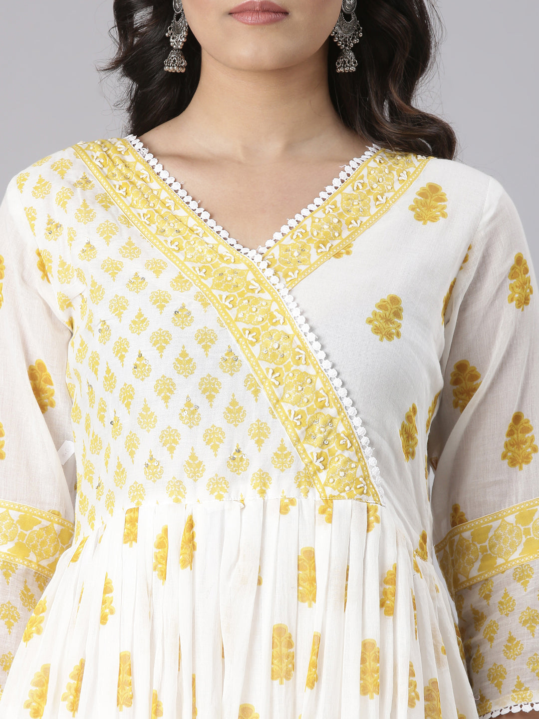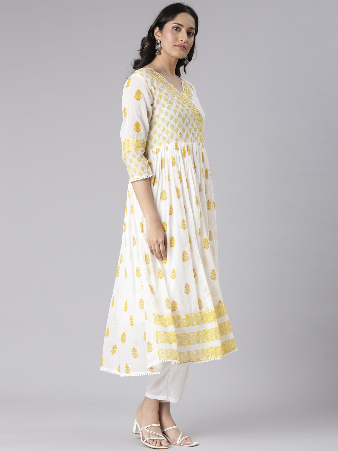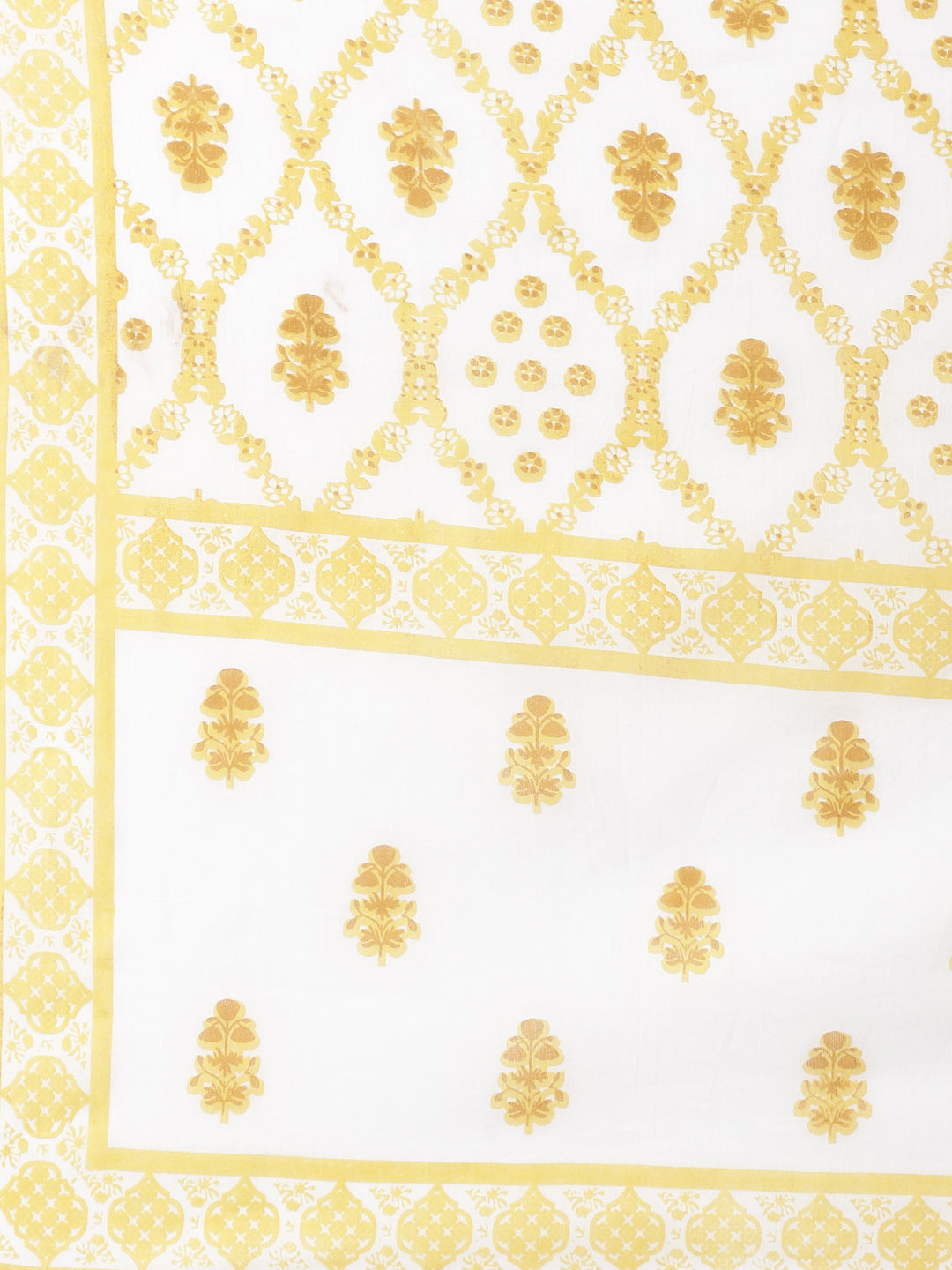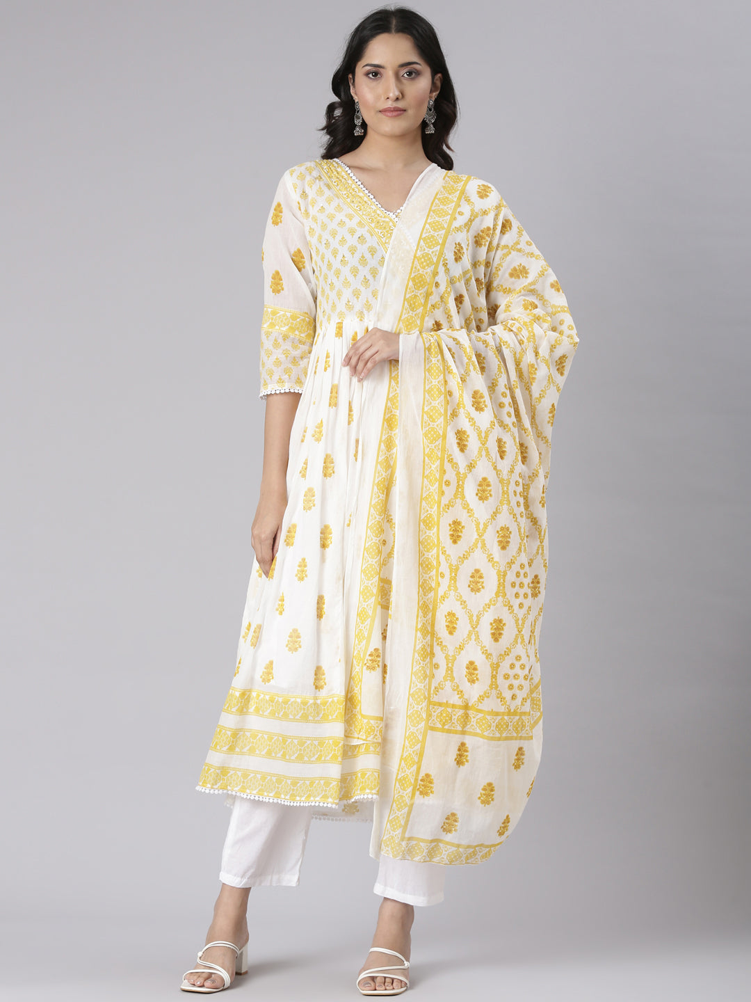 Neerus Mustard Printed Straight Kurta and Trousers With Dupatta