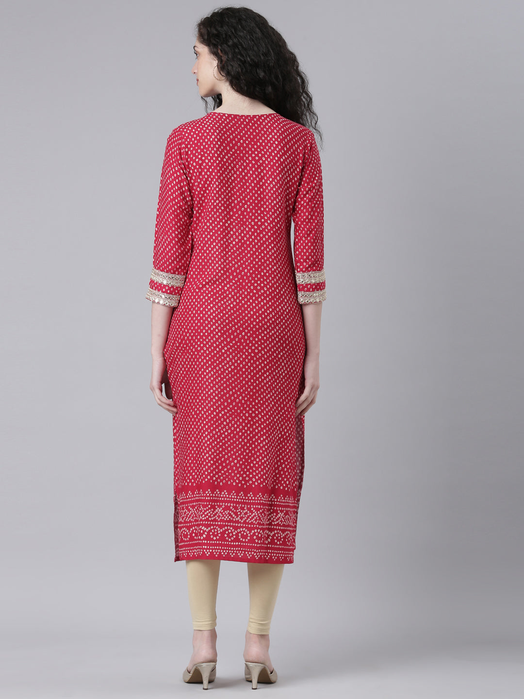 Elevate your casual look with Neerus Pink Bandhani Kurtas. Crafted with comfort in mind, these straight kurtas offer a stylish and relaxed fit. Featuring a vibrant pink hue and traditional bandhani print, they are perfect for any occasion.