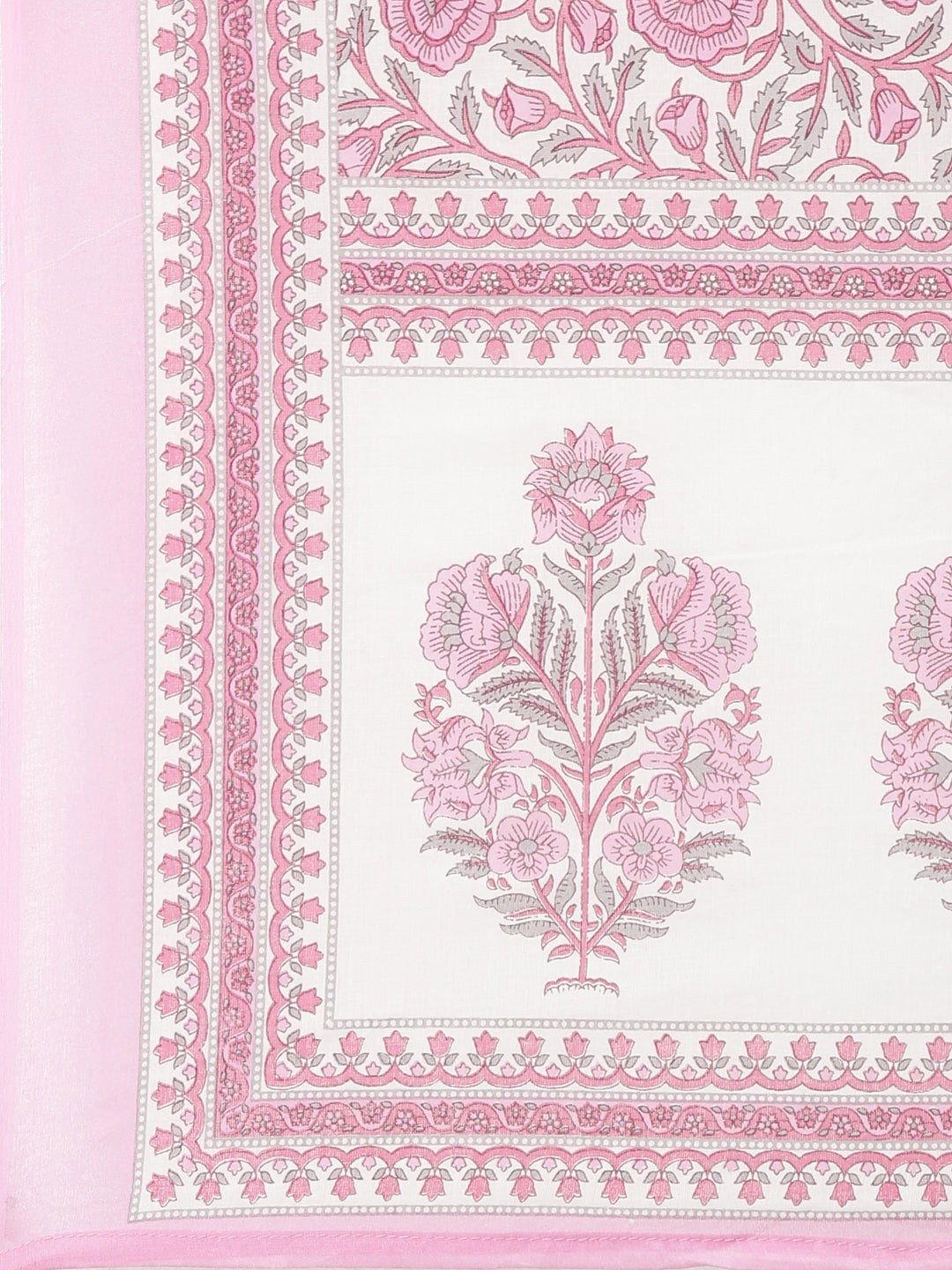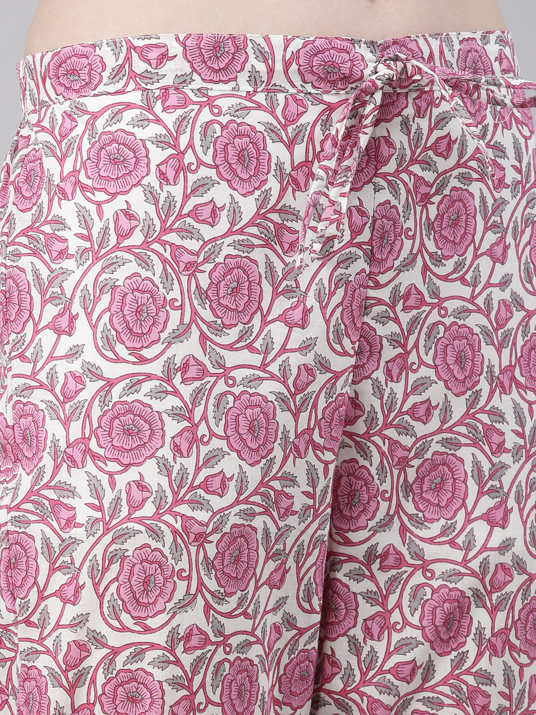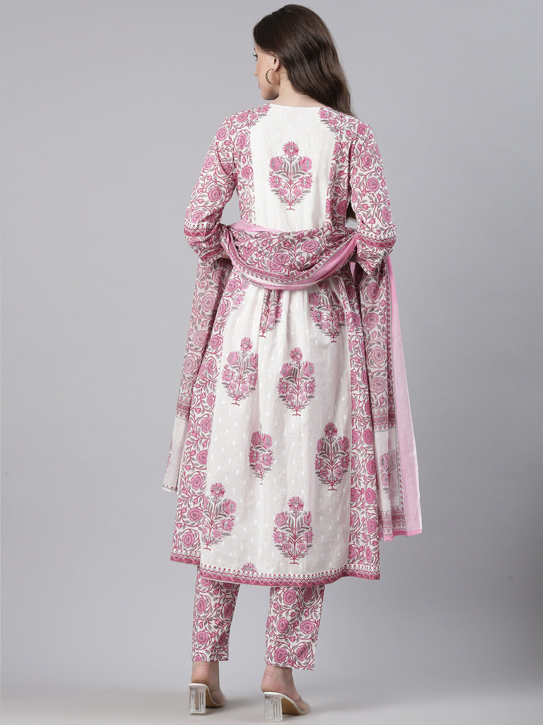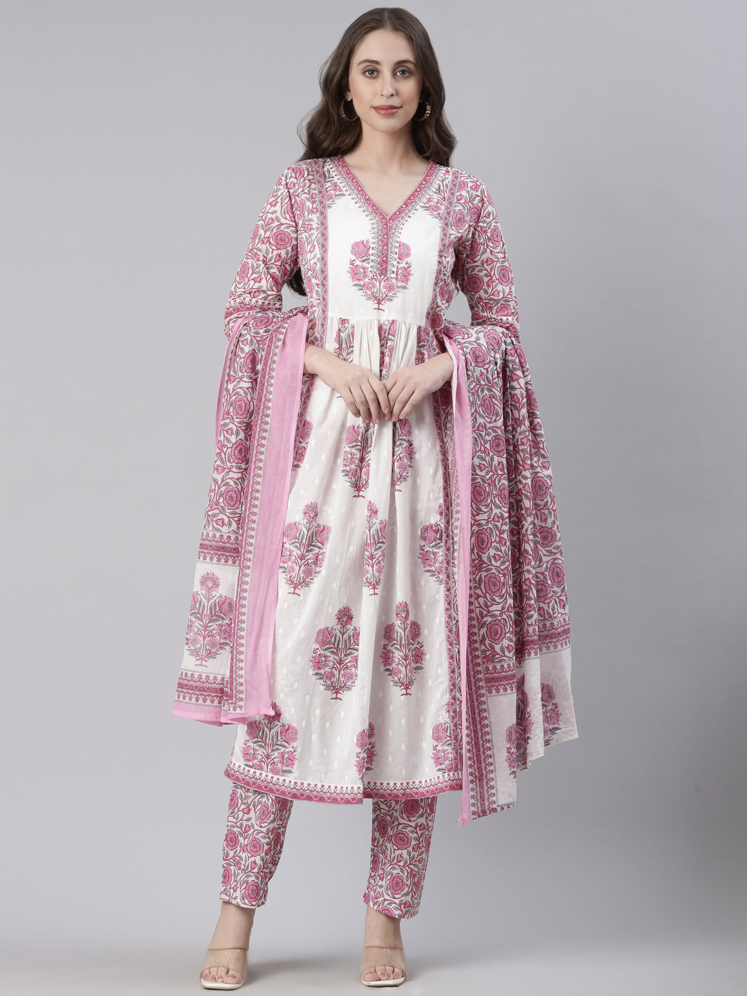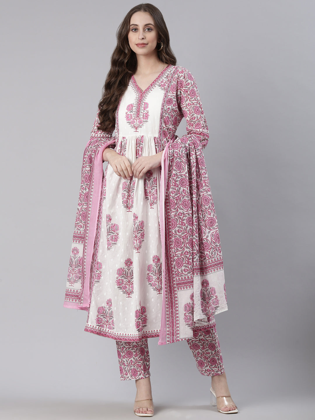 Neerus Pink Printed Straight Kurta and Trousers With Dupatta