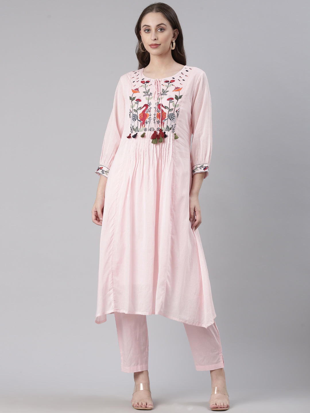 The Neerus Pink Solid Straight Kurta and Trousers set combines classic design with a contemporary touch. Featuring a sleek straight-cut kurta in a subtle pink shade, paired with matching trousers, this ensemble offers both comfort and polished style. Ideal for elegant gatherings or professional settings, it ensures a graceful and confident appearance.