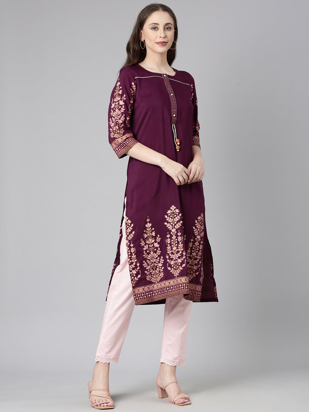 Elevate your everyday wardrobe with the Neerus Purple Casual Solid Straight Kurta. Crafted for comfort and style, this kurta features a straight cut that offers a flattering silhouette suitable for various occasions.
