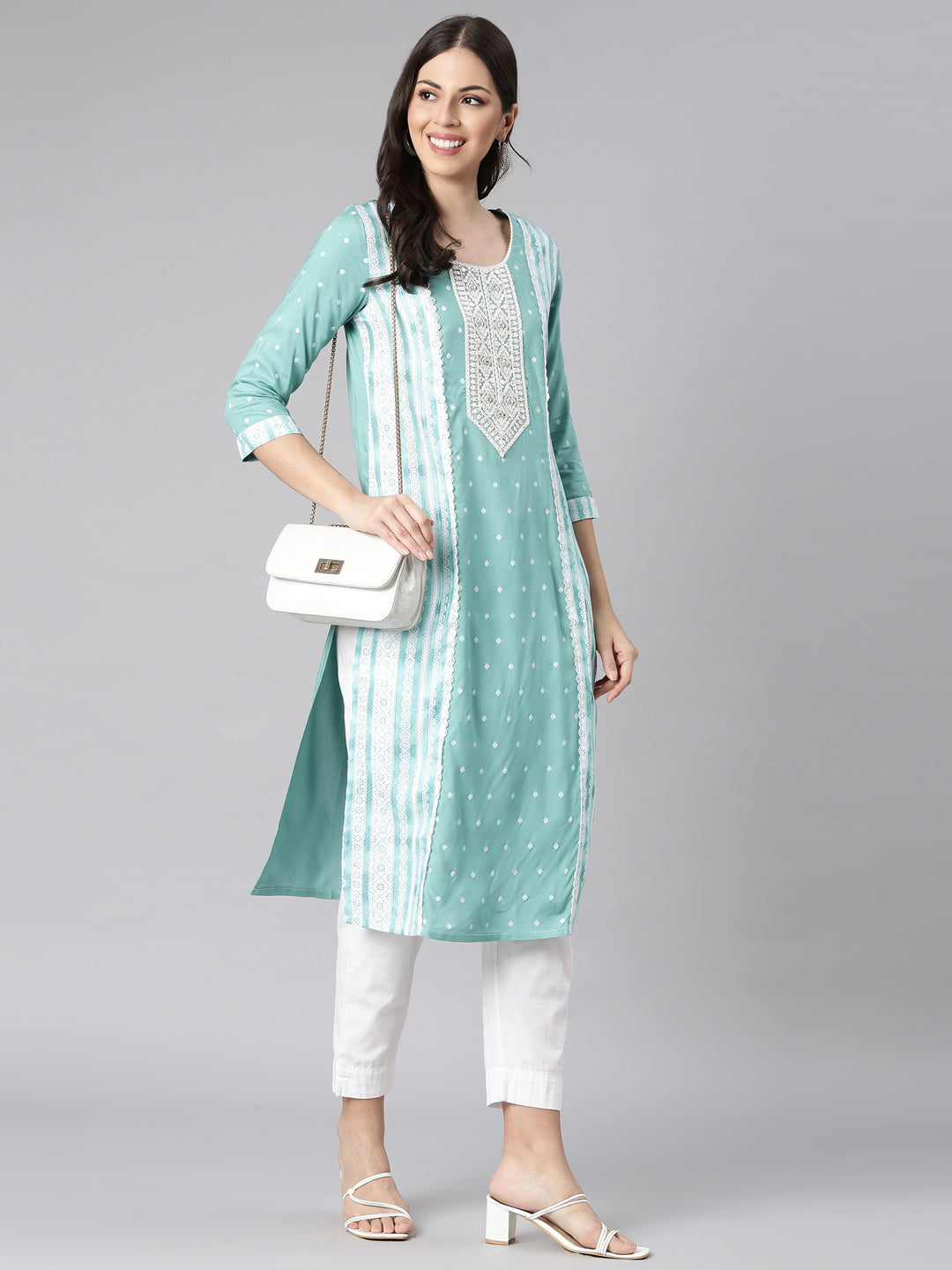 The Neerus Sea Green Casual Solid Straight Kurtas are the perfect addition to any wardrobe. Made with high-quality fabric, these kurtas are comfortable and versatile, making them ideal for any casual occasion. The solid color and straight cut add a touch of elegance, making you stand out in style.