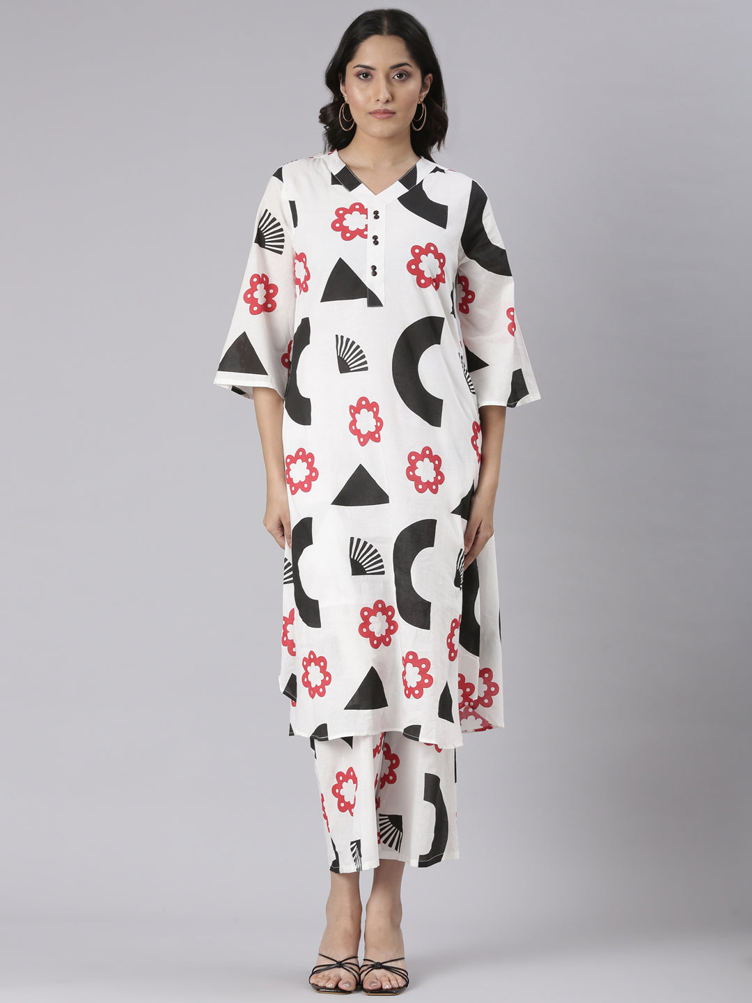 The Neerus White Printed Straight Kurta and Trousers set embodies understated elegance with its subtle printed design and clean, straight silhouette. Crafted from premium fabric, this ensemble ensures comfort while maintaining a polished look, ideal for refined daytime events or sophisticated casual wear.