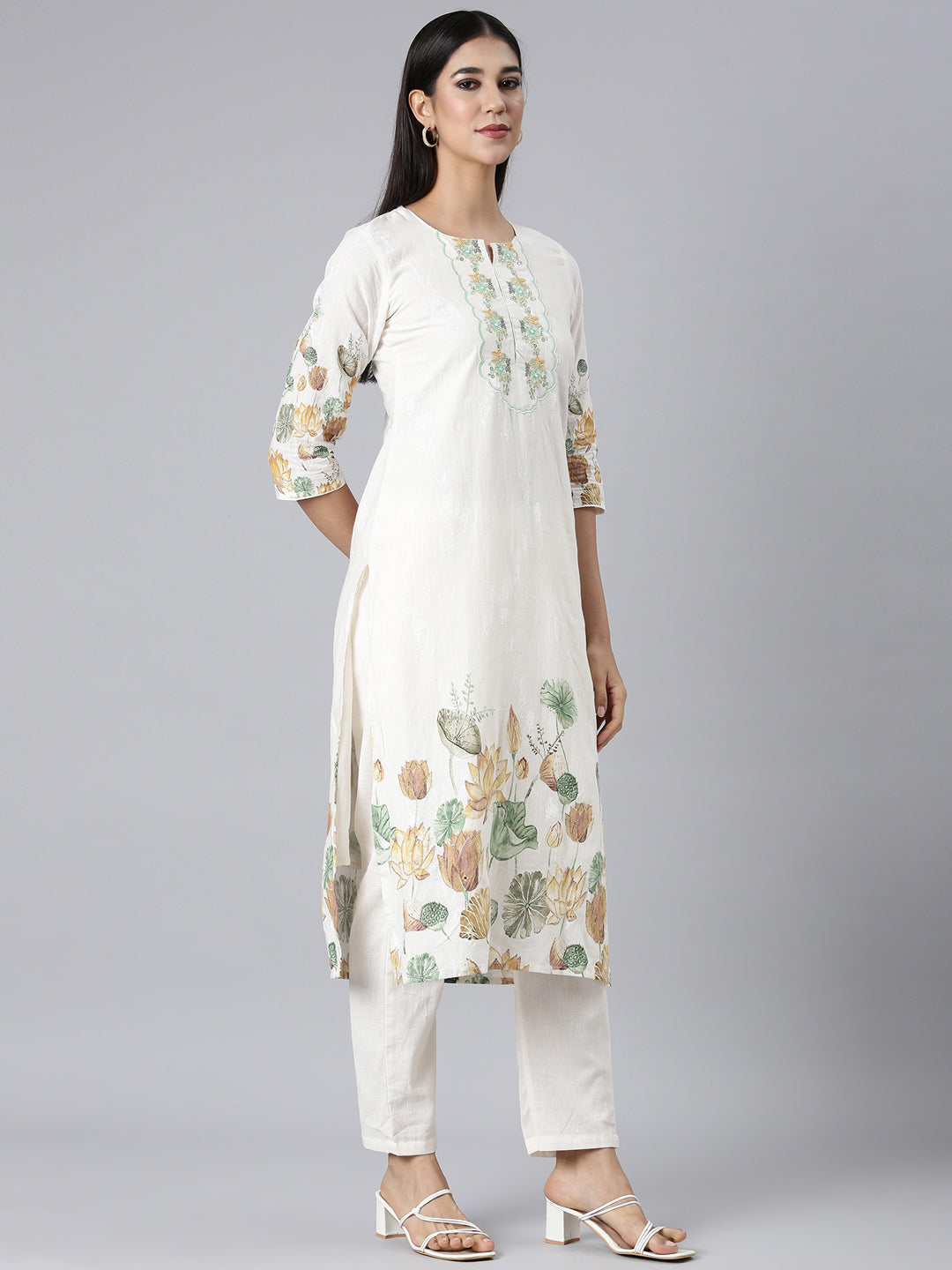 Elevate your ethnic wardrobe with this elegant white printed straight kurta set. Perfect for both casual outings and festive occasions, this versatile three-piece set combines traditional charm with contemporary styling for effortless sophistication.