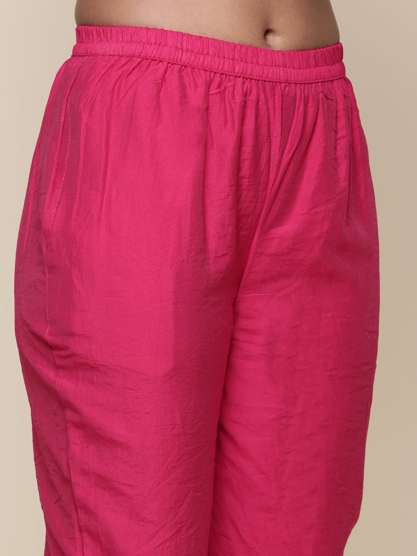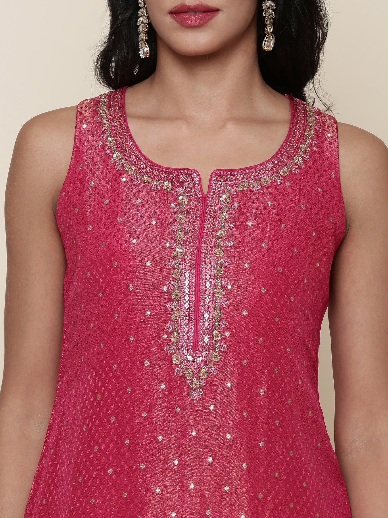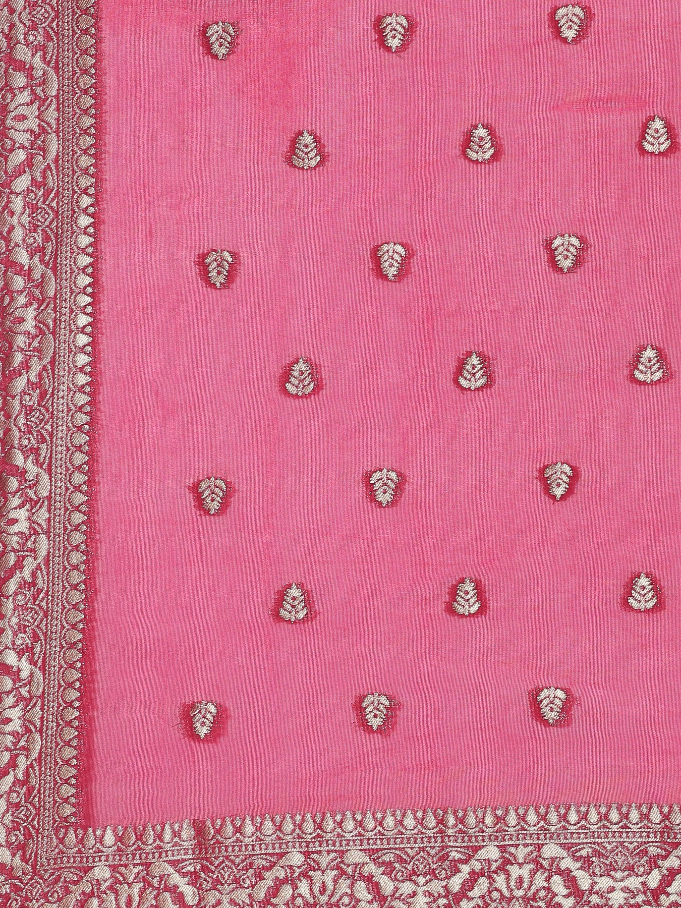 Elevate your wardrobe with this expertly crafted three-piece suit set made from delicate pink tissue fabric. The exquisite embroidery adds a refined texture, enhancing its elegance and making it perfect for formal occasions. The breathable material ensures comfort while the coordinated pieces offer versatility in styling, delivering both sophistication and grace effortlessly.