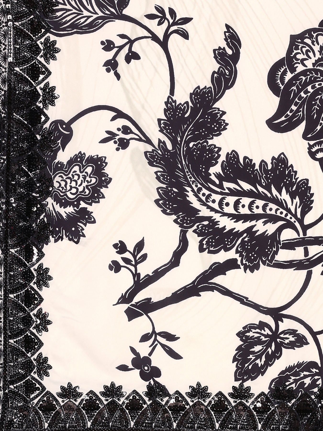 Elevate your elegance with this black and white satin saree, featuring exquisite hand embroidery that adds a refined touch to its printed design. Paired with a ready-made blouse, this ensemble offers effortless style and timeless sophistication for special occasions or formal events.