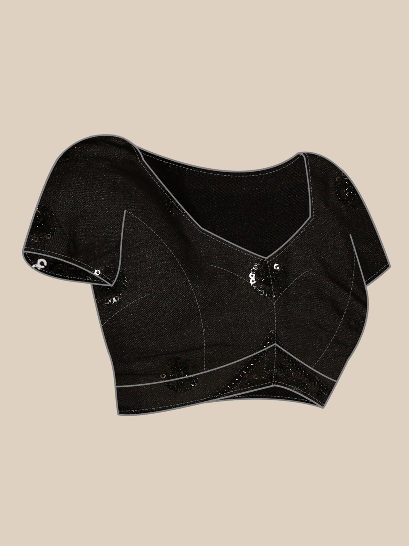 The saree is accompanied by a stylish, ready-made blouse designed to complete your look.