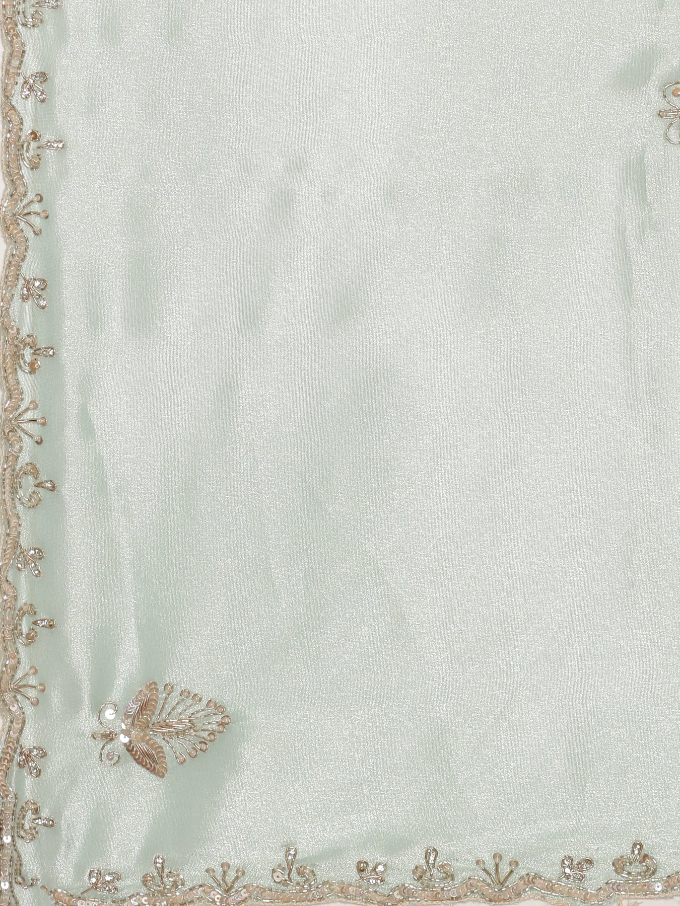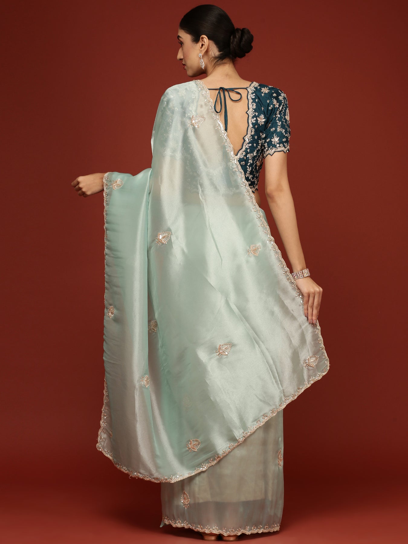 Elevate your elegance with this Blue Tissue Saree, beautifully adorned with subtle stone work that adds a refined shimmer. Paired with a meticulously crafted readymade blouse, it offers a perfect blend of tradition and convenience. Ideal for special occasions, this saree ensures a graceful drape and a sophisticated look that commands attention effortlessly.