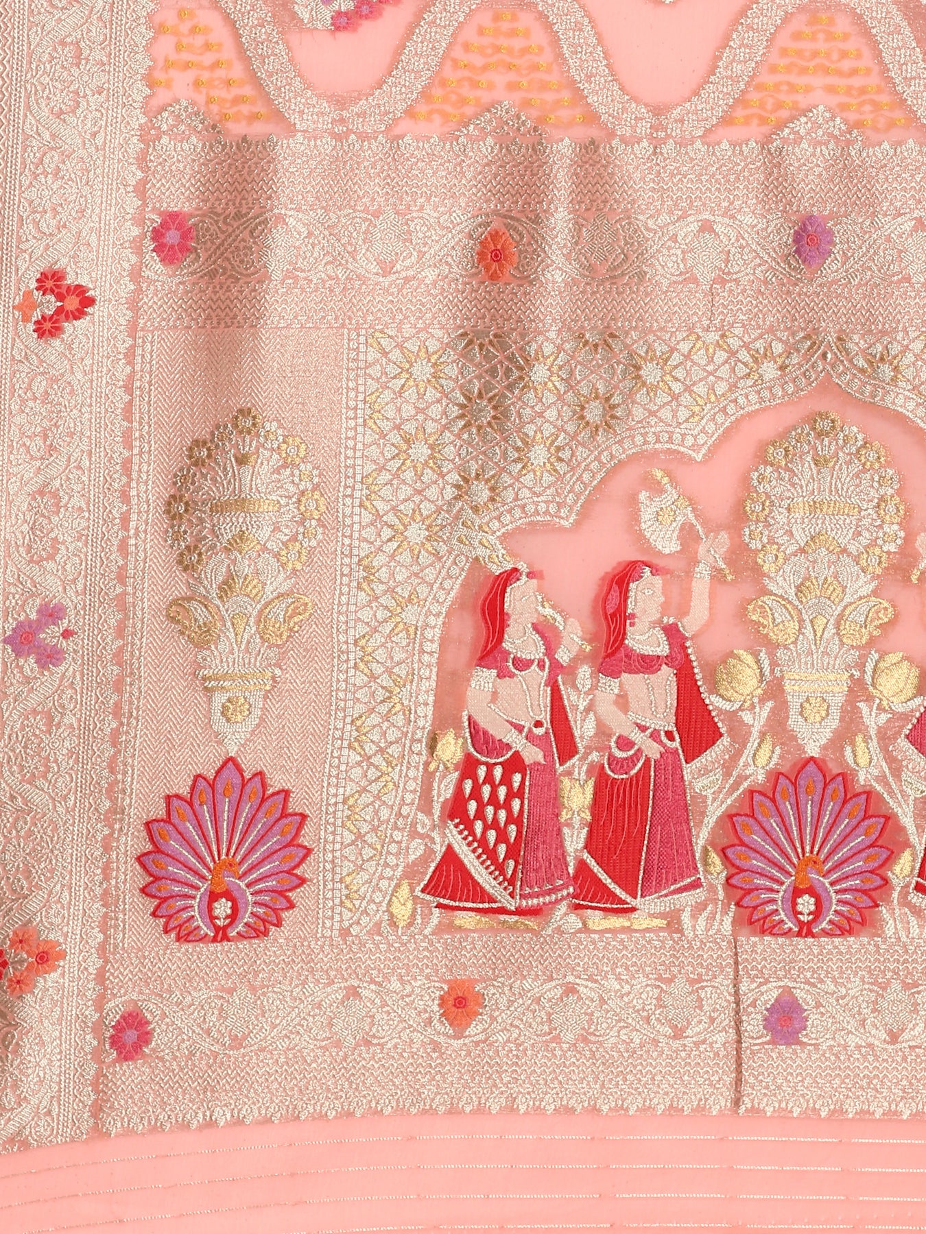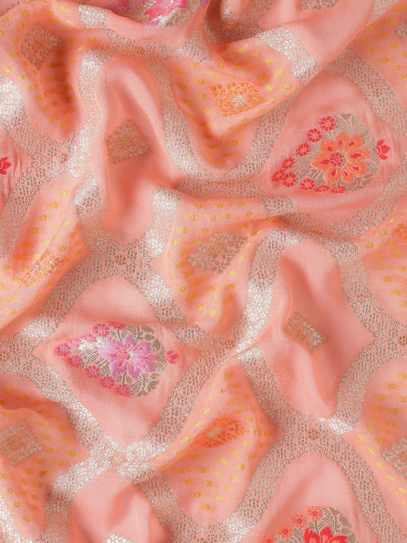 Experience timeless elegance with this Pink Khadi Banaras Weave Saree. Crafted with traditional Banarasi weaving techniques, its rich texture and vibrant pink hue bring sophistication to any occasion. The breathable khadi fabric ensures comfort throughout the day, while the intricate weave adds a touch of heritage and grace to your wardrobe. Perfect for festive events or celebrations, this saree effortlessly combines tradition with contemporary style. Elevate your look with a piece that embodies both beauty and craftsmanship.