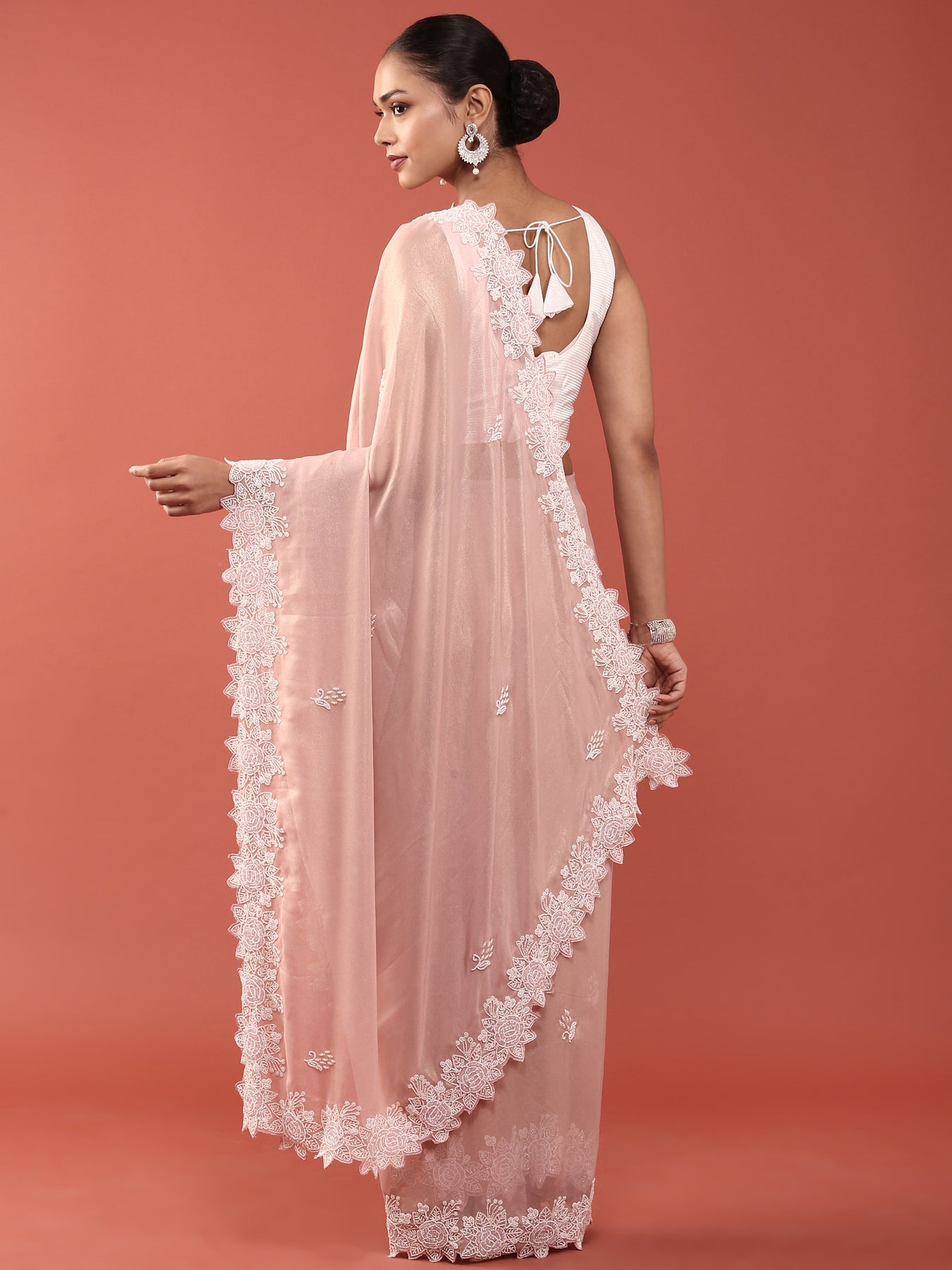 Embrace timeless elegance with this stunning pink organza saree, adorned with intricate stone and thread embroidery. The delicate organza fabric drapes beautifully, creating a graceful silhouette perfect for weddings, celebrations, and special occasions. Each embellishment is carefully crafted to add sparkle and sophistication to your ensemble.