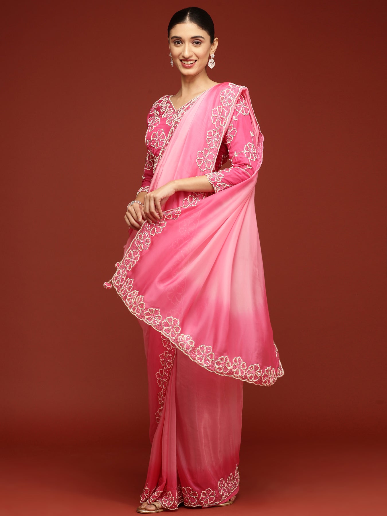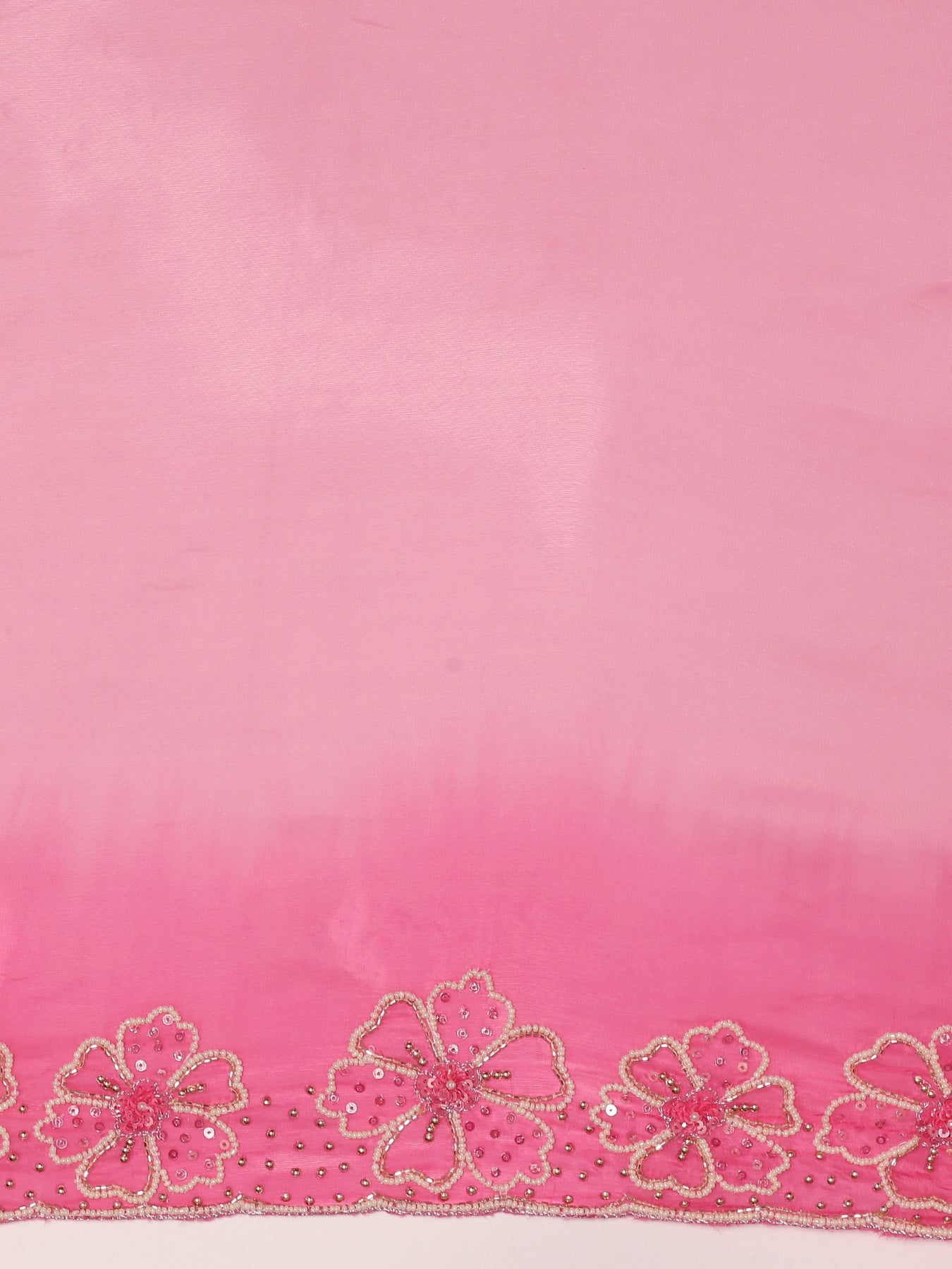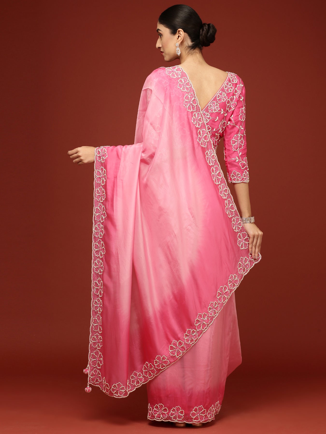 Elevate your elegance with this Pink Silk Saree adorned with exquisite stone work that adds a subtle sparkle to your look. Crafted from luxurious silk, it drapes gracefully for a flattering fit. Paired with a perfectly tailored readymade blouse, this ensemble ensures both style and convenience, making it ideal for festive occasions or special celebrations. Experience comfort and glamour effortlessly.