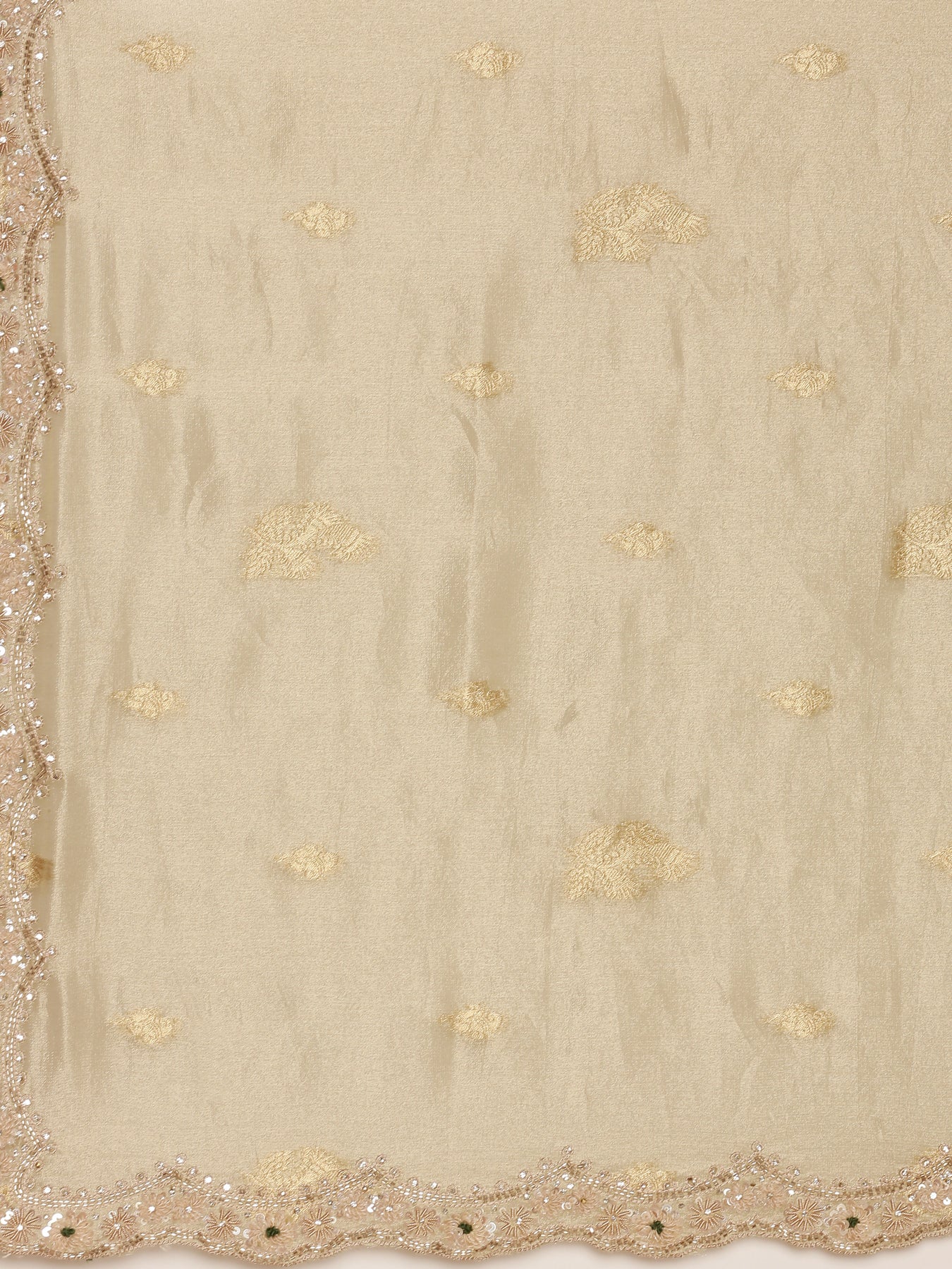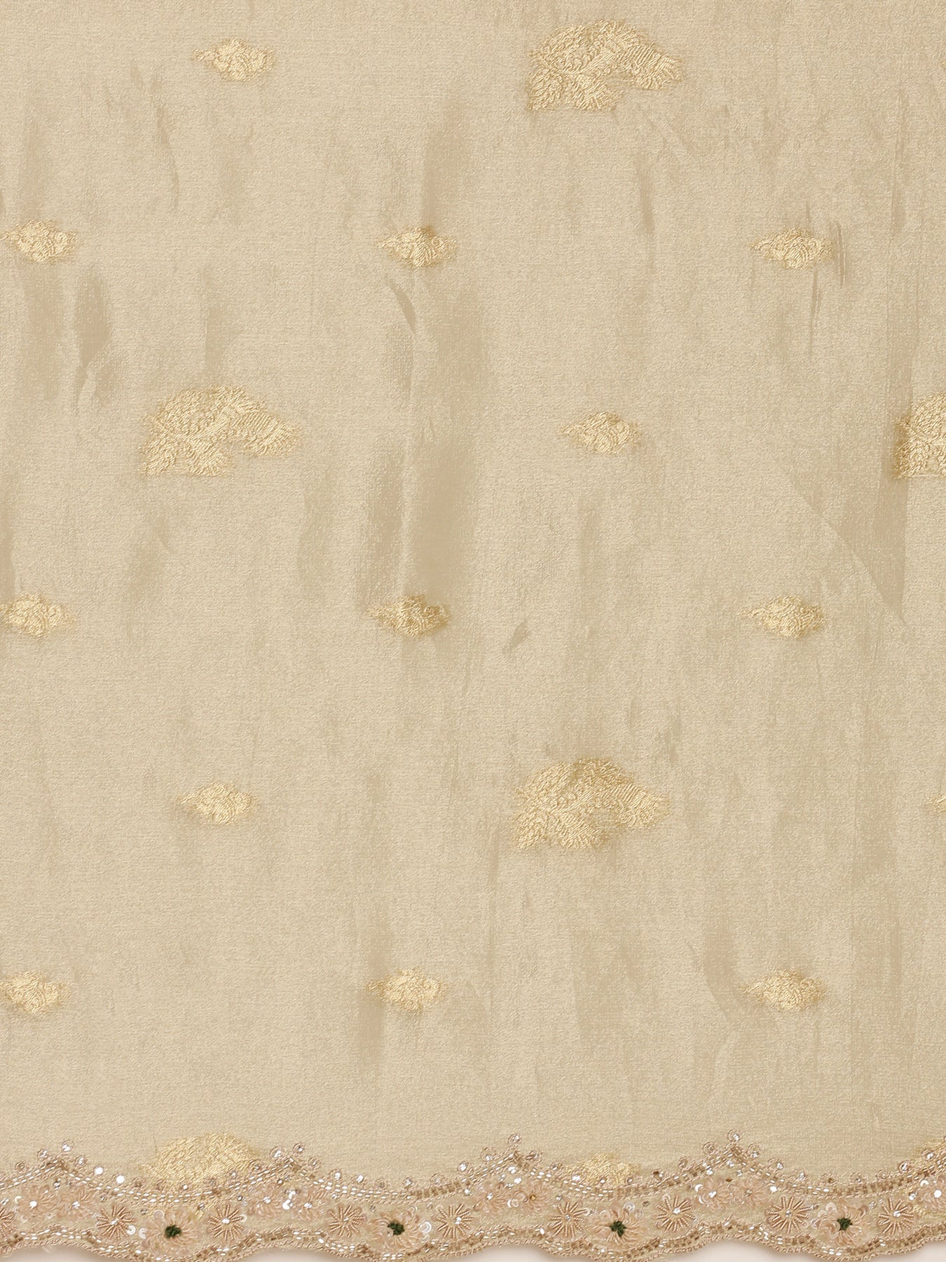 This pista green tissue-weaved saree features intricate stone work, adding a subtle shimmer to its elegant design. Paired with a matching readymade blouse, it offers a refined and effortless ensemble perfect for festive occasions or formal gatherings. The delicate fabric ensures comfort while showcasing timeless sophistication.