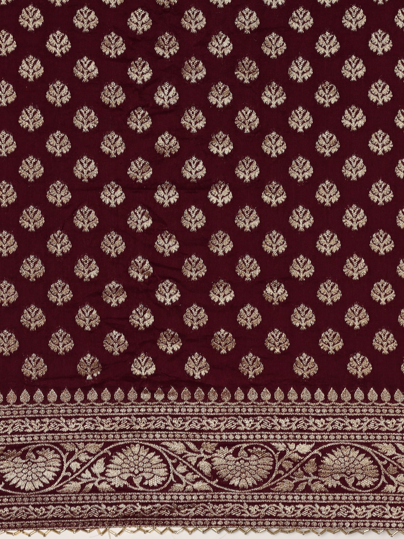 Experience the timeless elegance of this Purple Banaras Weaved Saree, crafted with intricate weaving that highlights rich traditional artistry. Paired with a finely embroidered readymade blouse, it offers a perfect blend of heritage and contemporary style. Ideal for festive occasions or special events, this saree not only enhances your grace but also ensures comfortable wear with its premium fabric and impeccable finish. Elevate your wardrobe with this exquisite piece that celebrates classic craftsmanship and sophisticated charm.