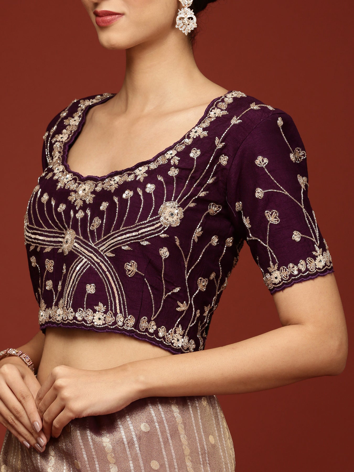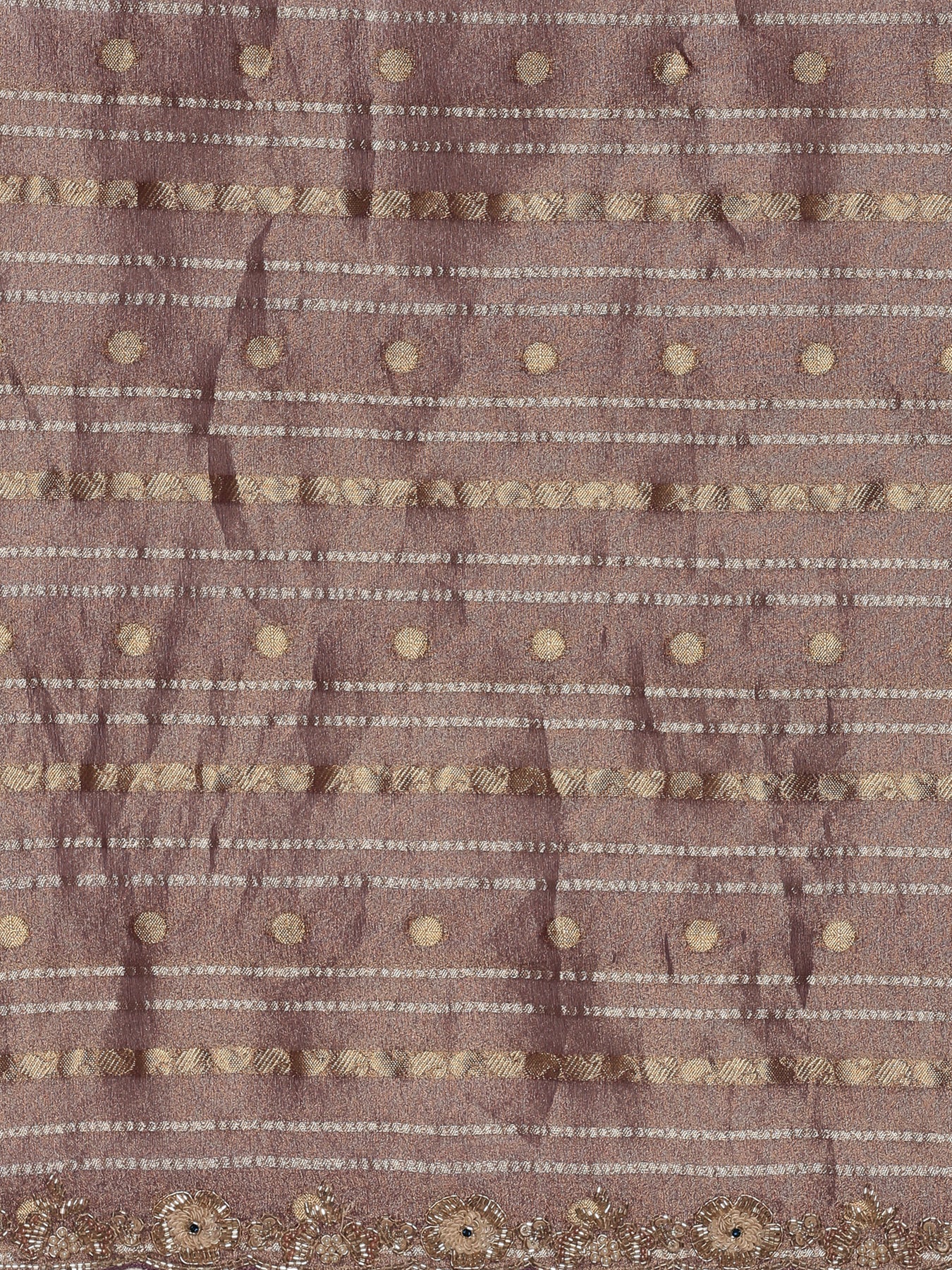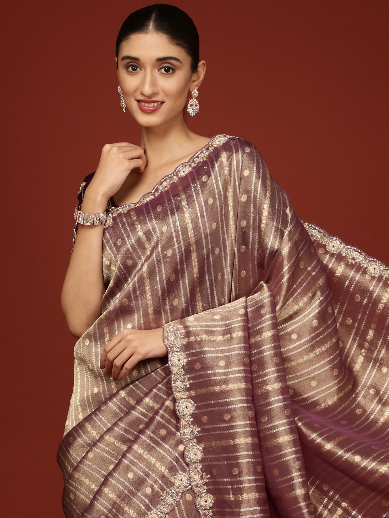 Purple Tissue Weaved Saree With Stone Work Readymade Blouse